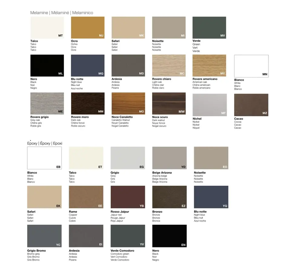 - Matière: Plateau en mélamine et pieds tubulaires en métal laqué (ou chromé).