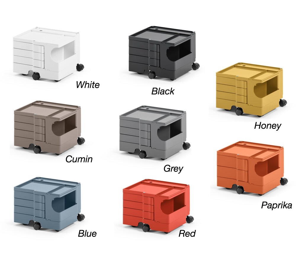 Le caisson à roulettes Boby se distingue par ses nombreuses possibilités d’utilisation et sa facilité de nettoyage et sont disponibles en differentes dimensions: B13:hauteur 31,5 cm , B22: hauteur 52,5cm, B32-B35: hauteur 73,5 cm en B44: hauteur 94,5cm. Autre les coloris classiques noir et blanc brillant, Brand New Office vous propose ce meuble de rangement dans une version gris, rouge et Vert Lime.