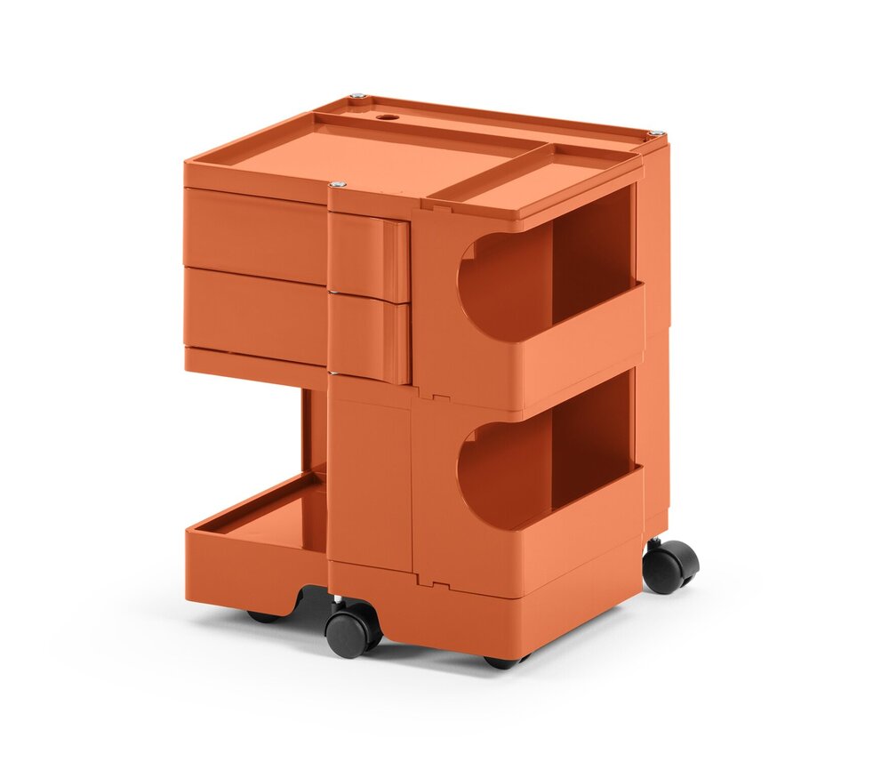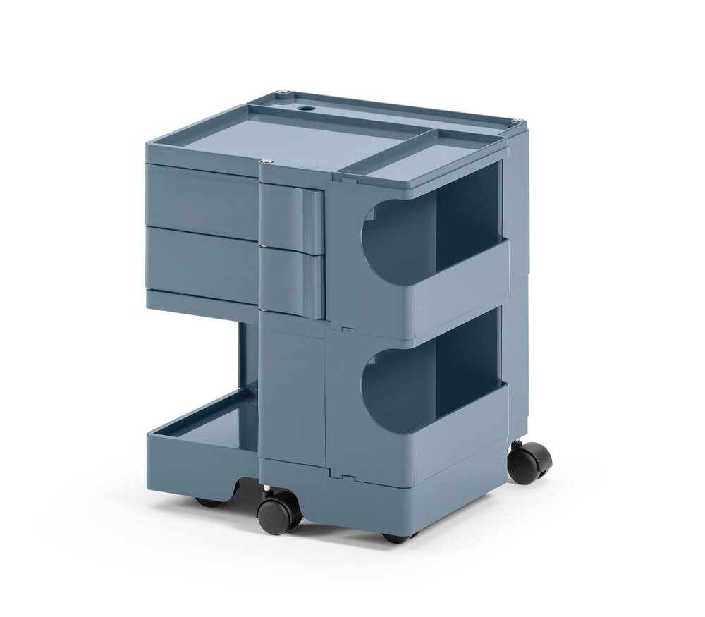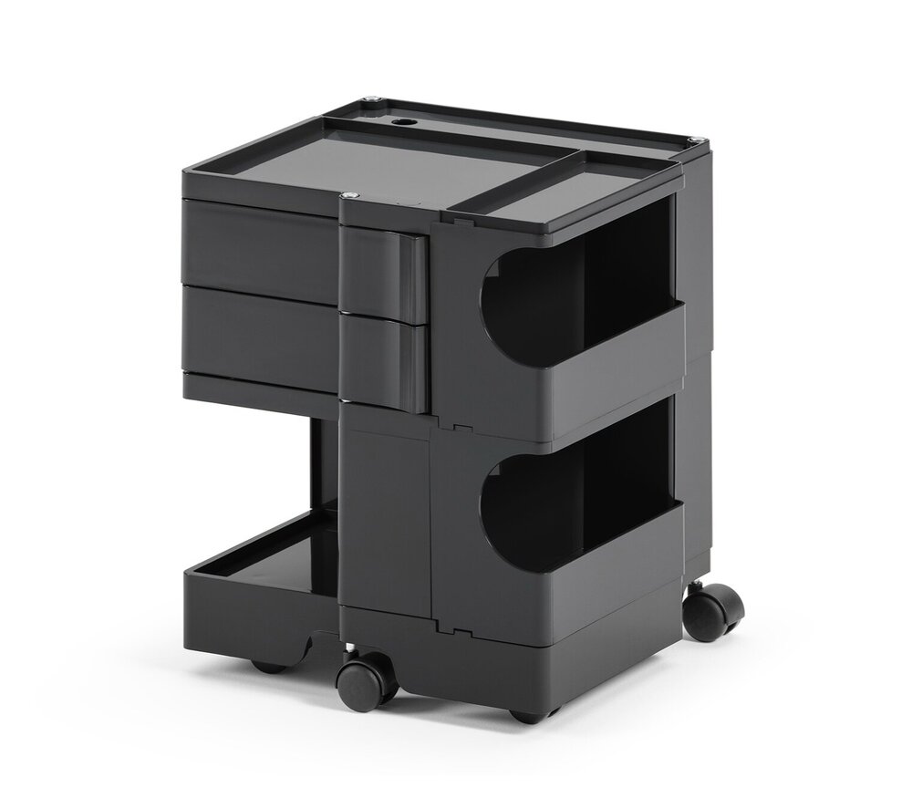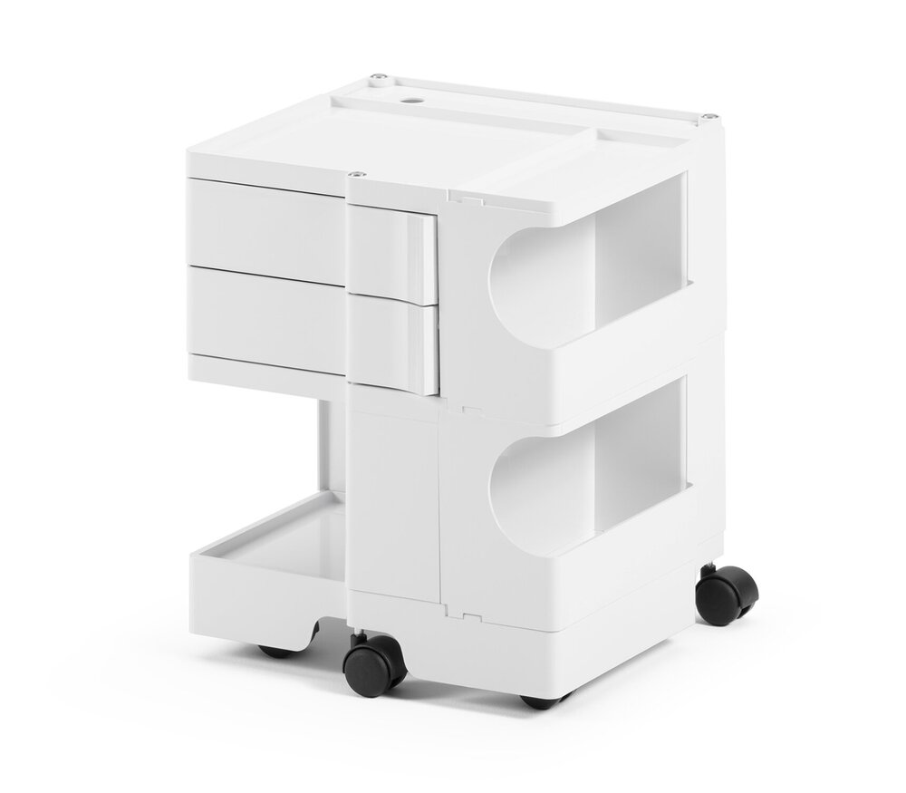Le caisson à roulettes Boby de B-Line, multifonctionnel et polyvalent avec ses tiroirs pivotants et ses nombreux compartiments en plastique ABS solide, offre beaucoup de place et permet de ranger les fournitures de bureau sous une forme élégante et claire. Cette polyvalence a fait du classique Designde Joe Colombo un objet privilégié de la vie quotidienne, que ce soit au bureau, dans le magasin, à l’atelier ou dans le cabinet de toilette pour visiteurs.
