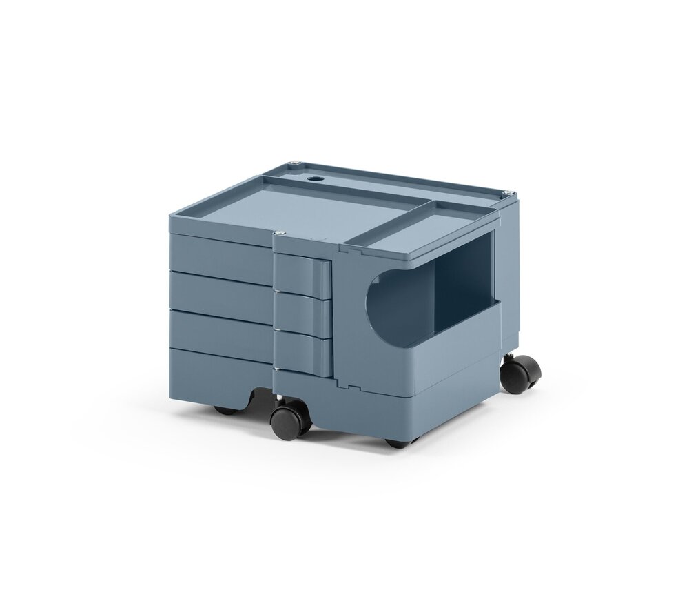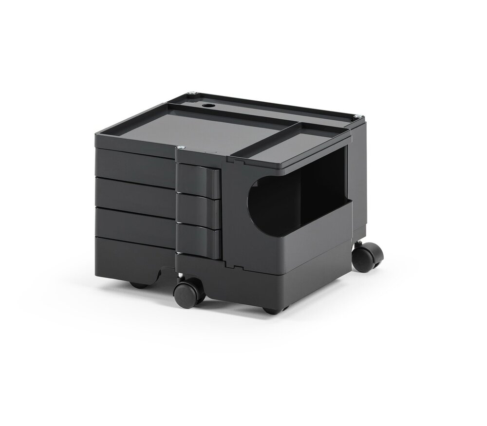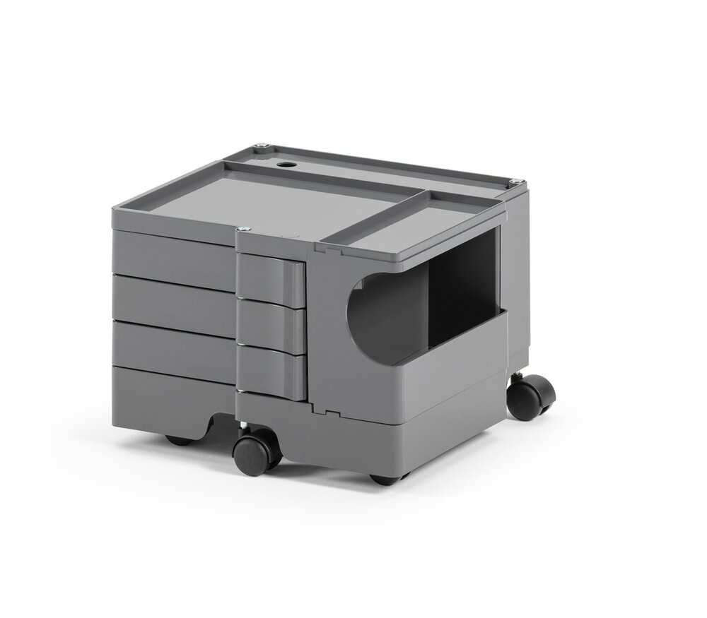 Conçu en 1970 par Joe Colombo pour B-Line, ce chariot de rangement est devenu un classique incontournable dans les bureaux, cabinets, ateliers et même salles de bains. Son design innovant et sa modularité en font une solution de rangement toujours actuelle dans les environnements professionnels et créatifs.