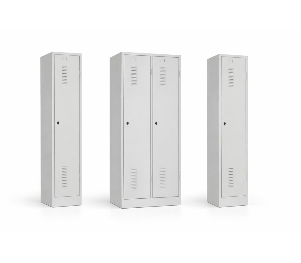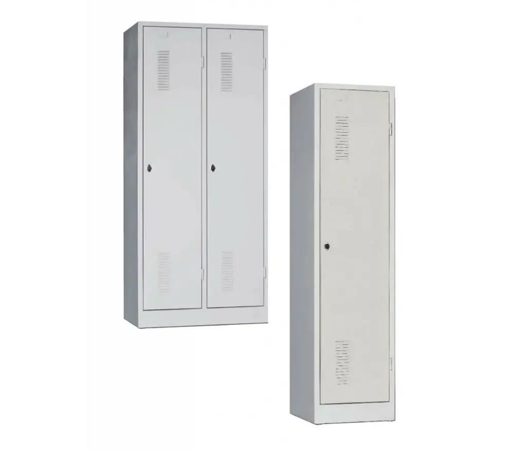 Chaque compartiment est équipé de série d’une tablette supérieure, d’une tringle porte-vêtements avec crochets et d’une cloison verticale intégrée permettant de séparer les vêtements propres des vêtements souillés. Les portes disposent d’ouvertures de ventilation favorisant la circulation de l’air ainsi que d’un porte-étiquette pour une identification claire.