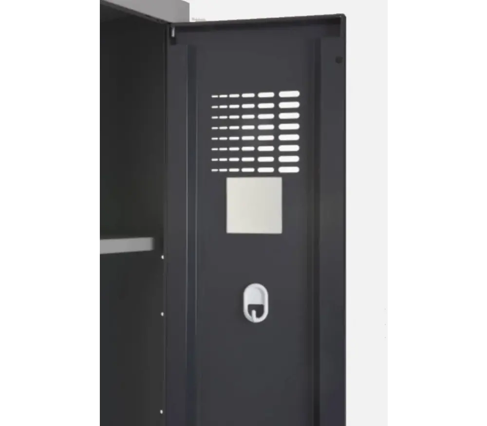 Les colonnes métallique se ferme avec une clefs qui est livrée avec. Livré avec un porte-étiquette à fixer sur la porte. Fabrication monobloc de 5 portes, 10portes ou 15 portes, prévue en industrie propres ou salissante. L'armoire métallique est équipée d'un vernis spécial, une peinture époxy, qui protège les armoires contre les rayures. Les armoires garde-robes en métal sont livrables entre 4 à 5 semaines chez Brand New Office. Les BNO armoire à vestiaires en métal avec des portes battentes font partie des meilleurs garde-robes de qualité. Les portes des armoires sont équipées de volets d'aération. Autre finitions et configurations sur demande.