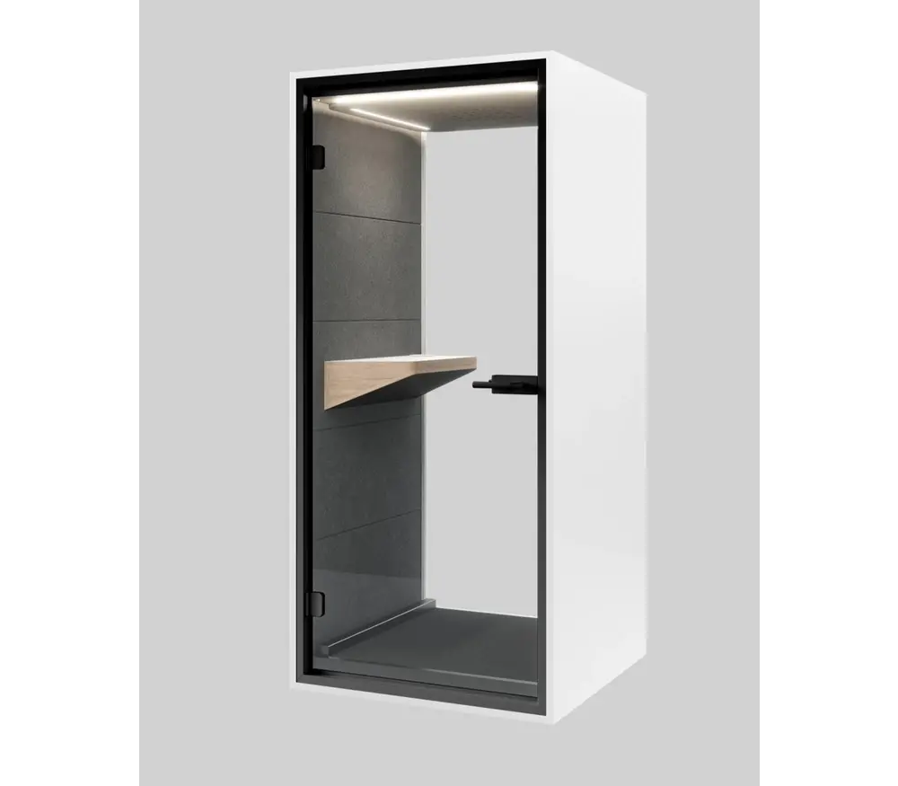 La Box1 Stand est une cabine acoustique individuelle moderne, conçue pour offrir calme et confidentialité au bureau. Grâce à son design minimaliste et intemporel, cette cabine insonorisée s’intègre parfaitement à tout environnement de travail. Idéale pour les appels téléphoniques, les visioconférences et les moments de concentration profonde.