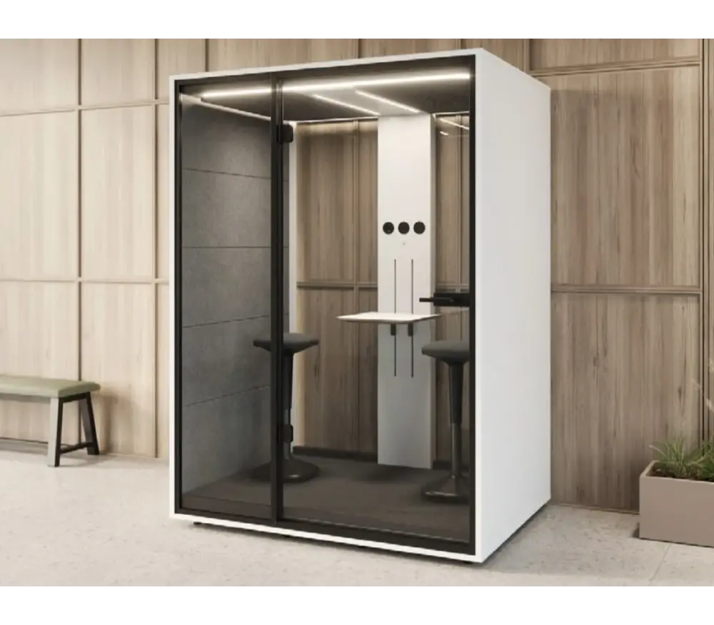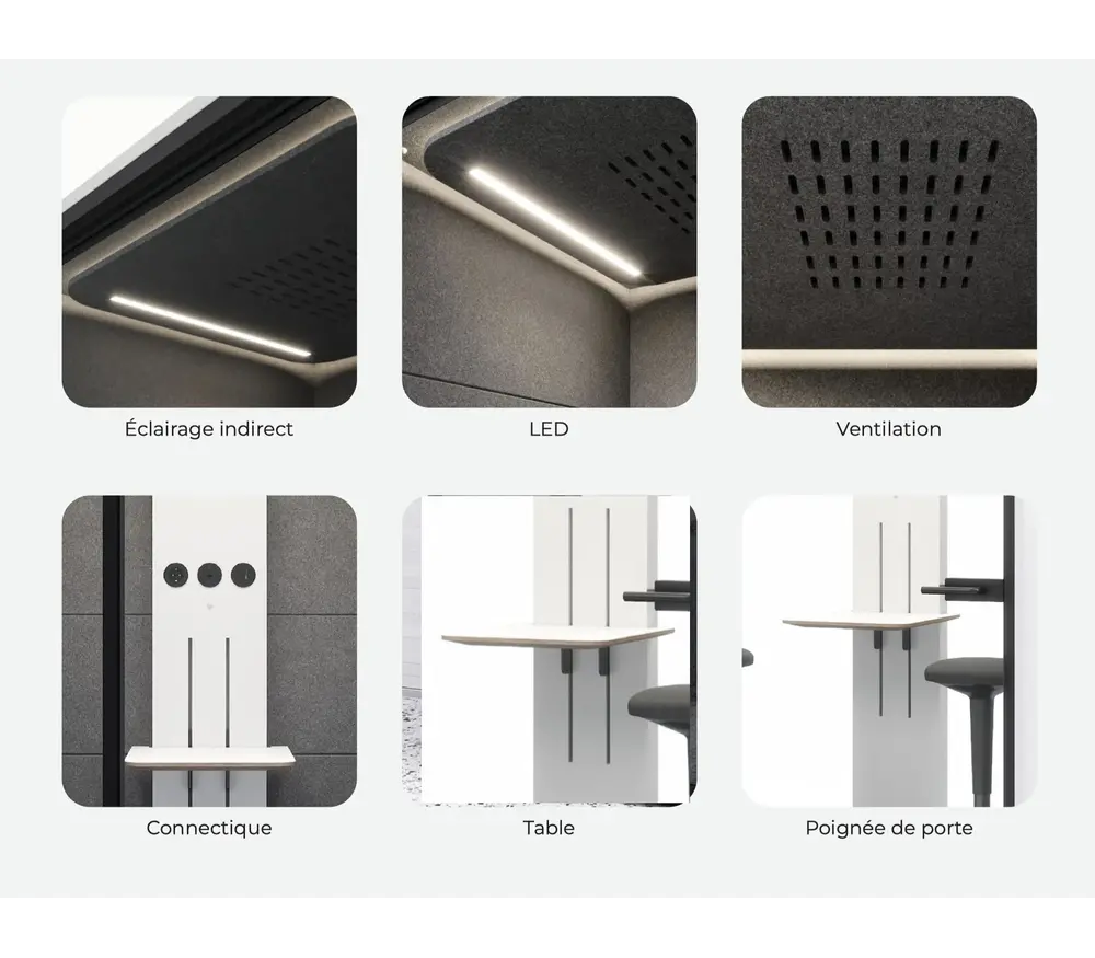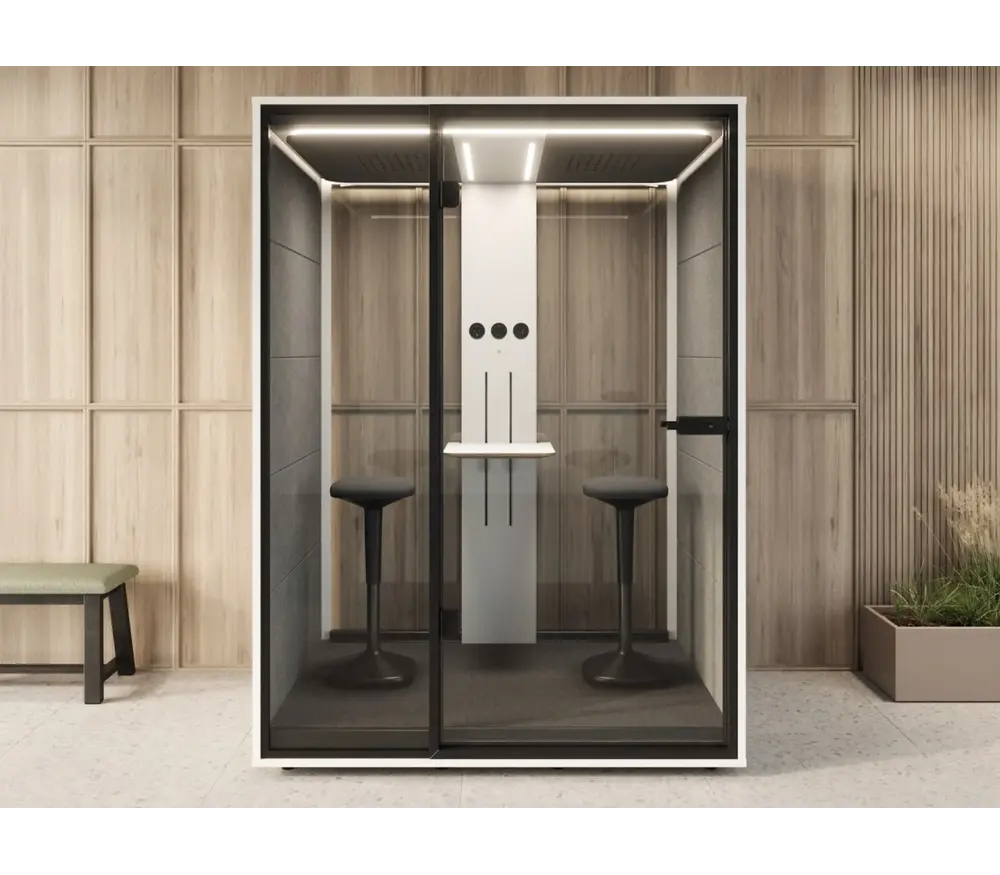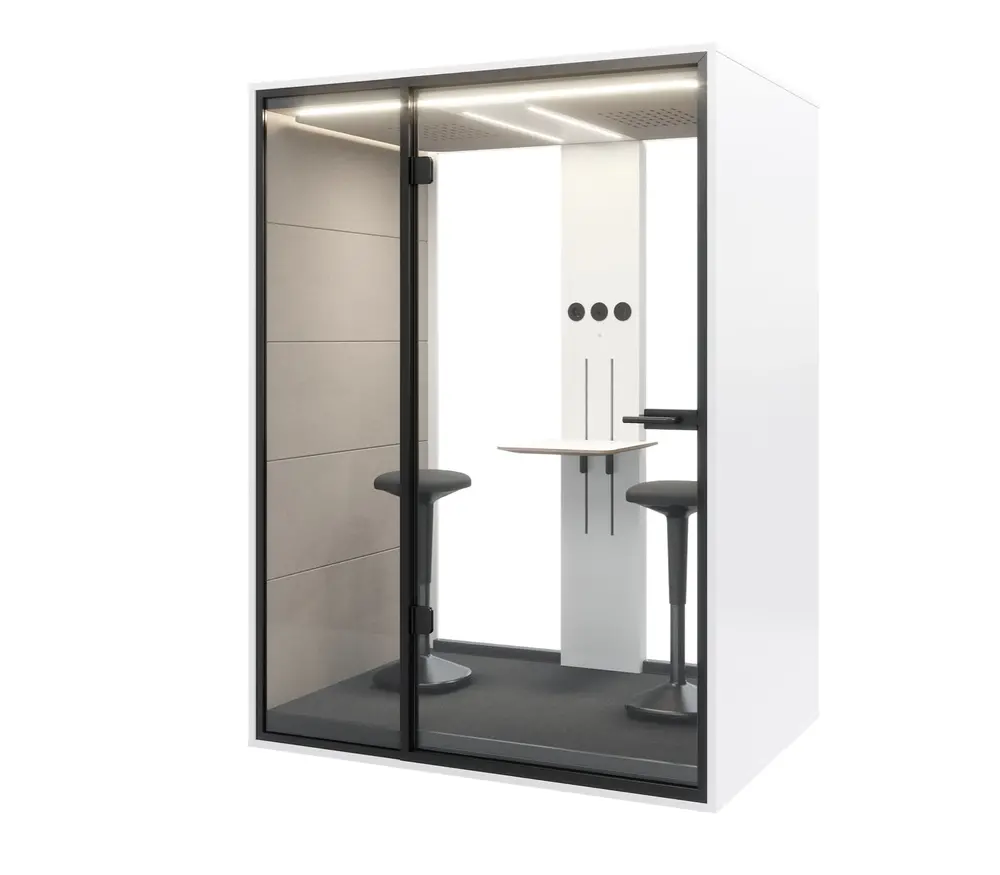 La cabine insonorisée Box2 Stand est conçue pour une personne et associe technologie intelligente et confort optimal :