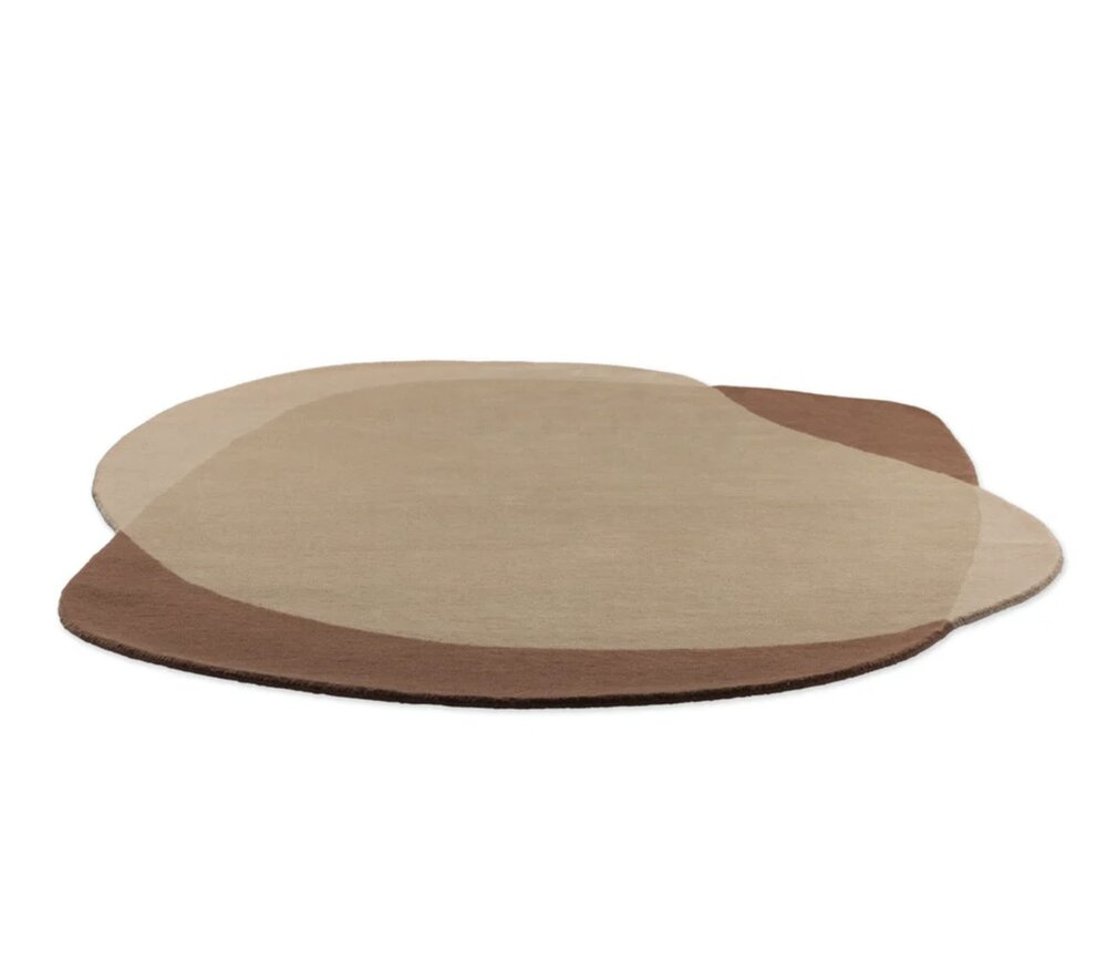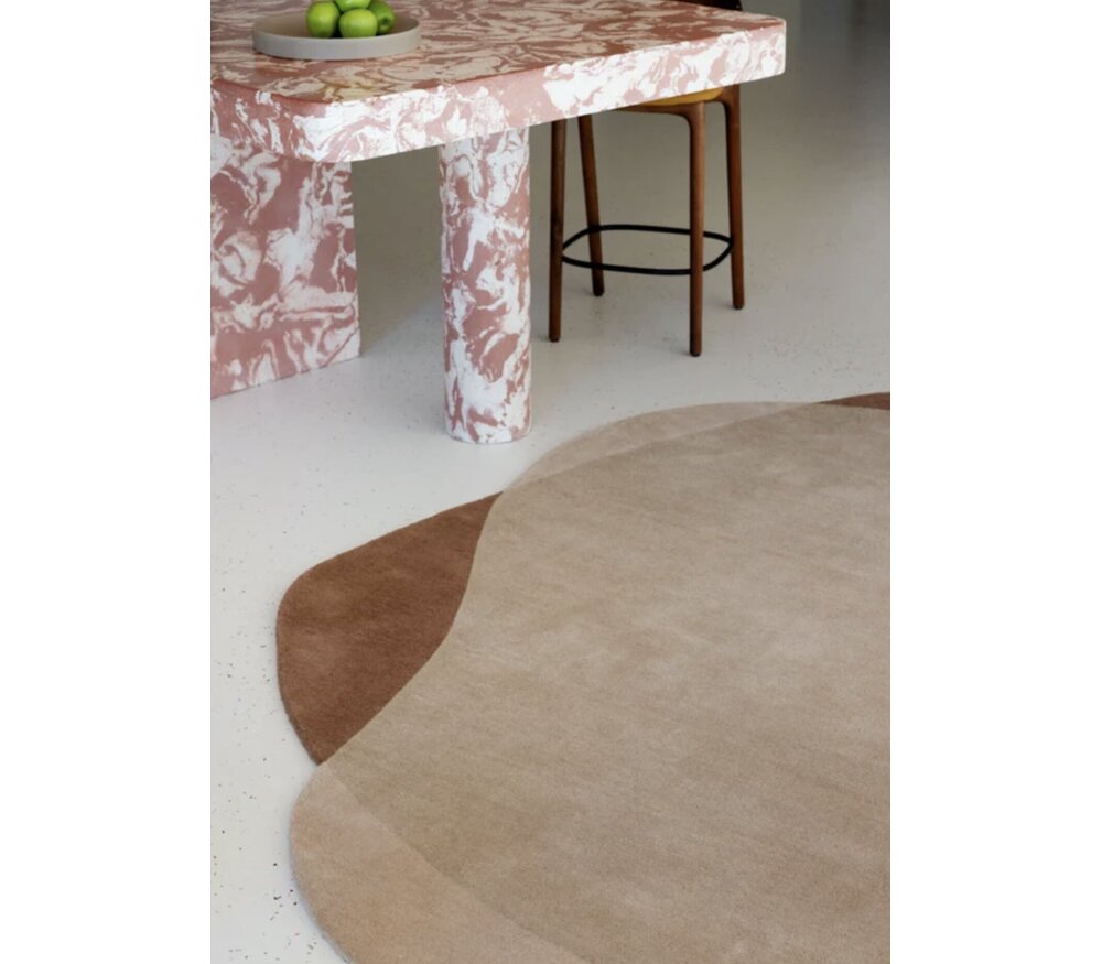 La collection Element Moore de Brink & Campman se distingue par ses formes fluides et contemporaines. Contrairement aux tapis traditionnels, ce modèle présente une forme arrondie et irrégulière, créant une ambiance plus douce et naturelle dans l’espace.