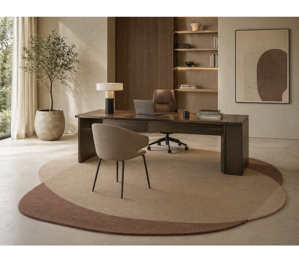 La teinte caramel apporte chaleur et élégance, tandis que le design organique ajoute une touche artistique. Ce tapis devient ainsi un élément central dans la pièce.