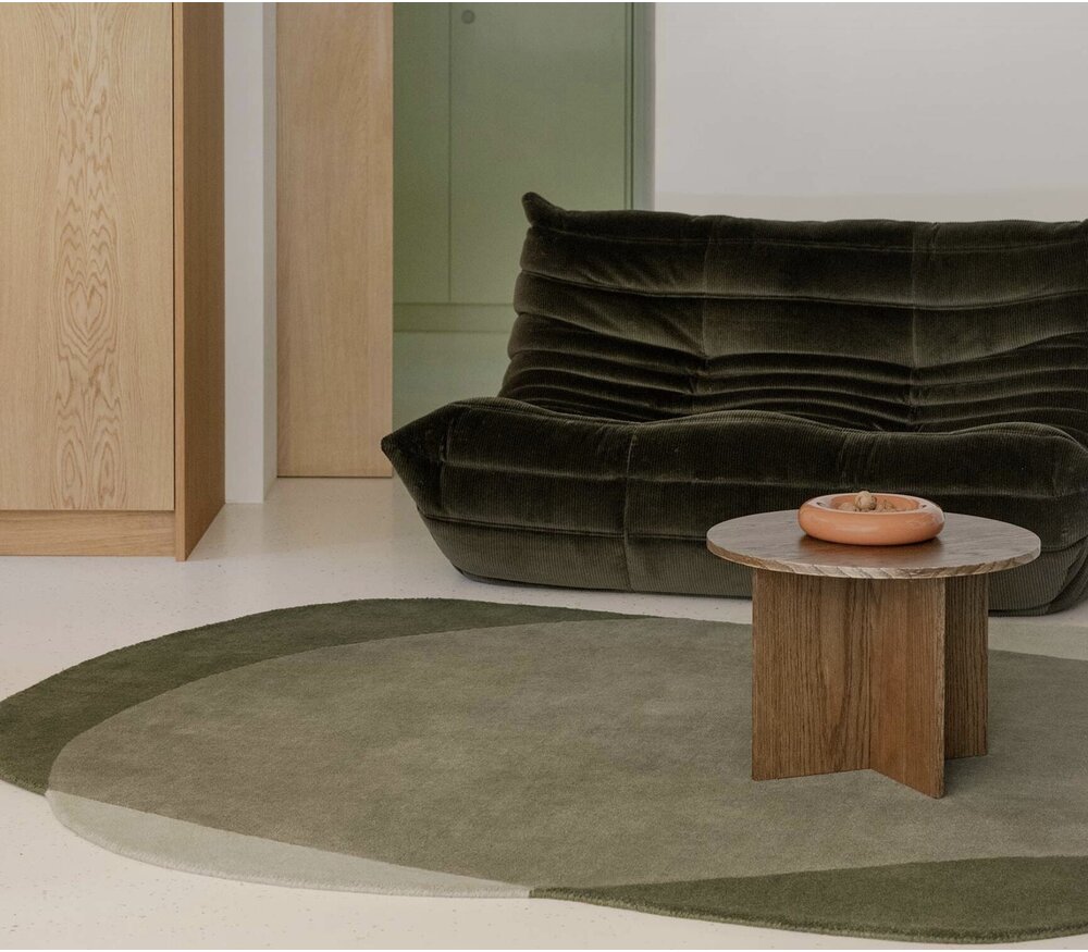 Le tapis Brink & Campman Element Moore Moss est un tapis en laine tufté à la main avec une forme organique et une teinte verte profonde, apportant une ambiance naturelle et apaisante.