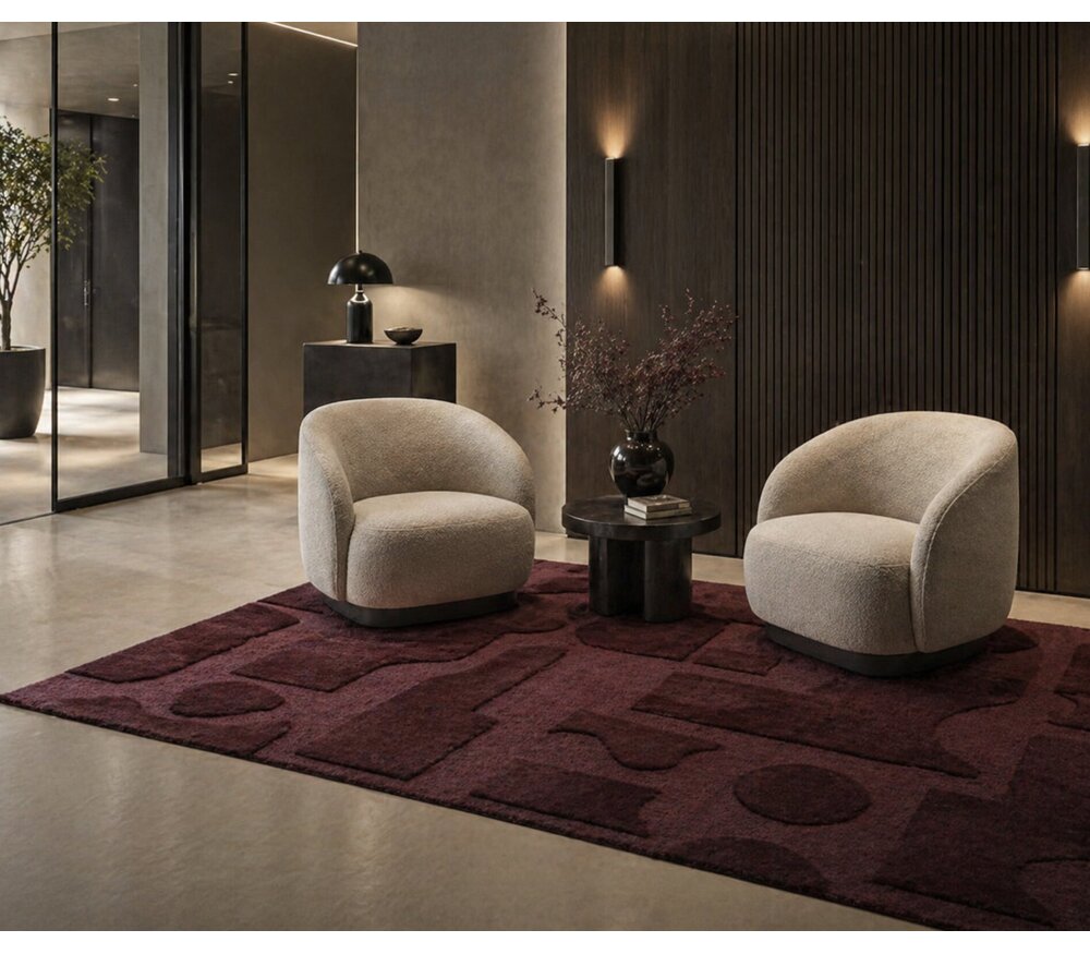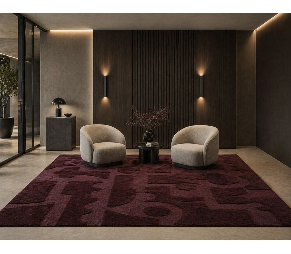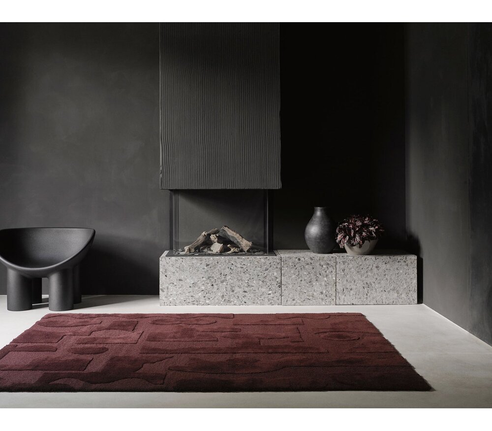 Le tapis Brink & Campman Mural Burgundy est un tapis en laine tufté au design abstrait, caractérisé par une teinte bordeaux profonde apportant chaleur et élégance.
