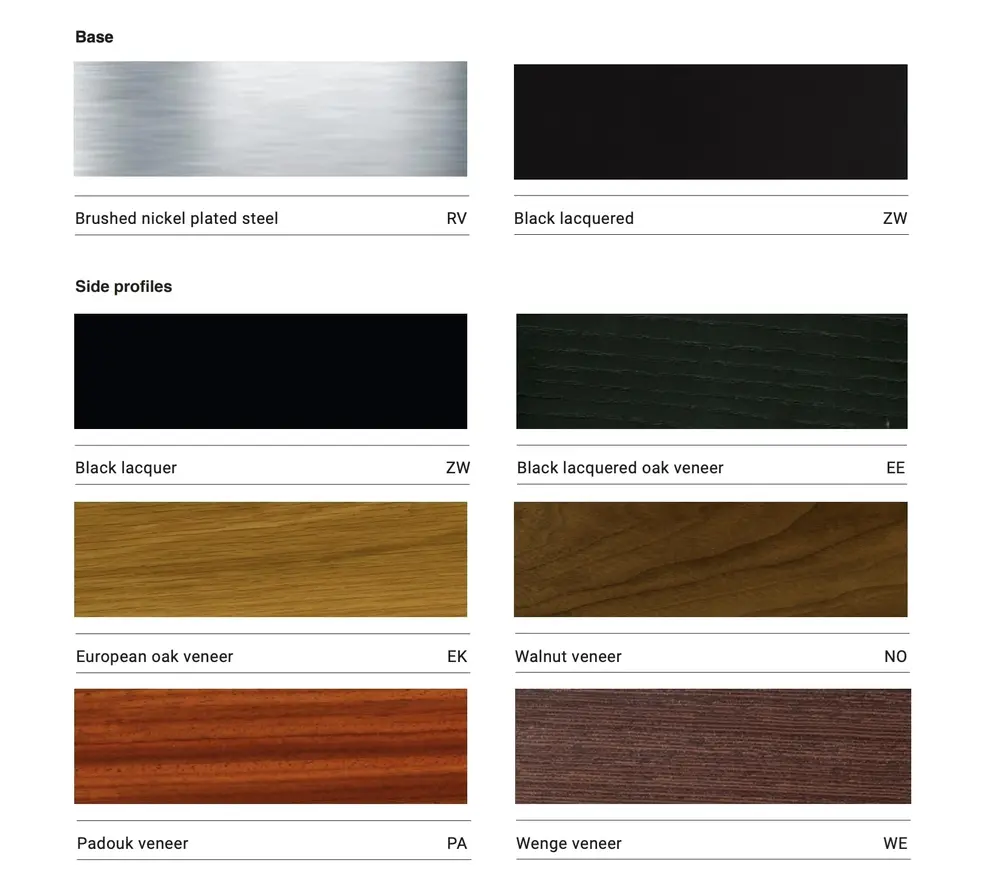 - Matière:Cuir, acier inoxydable ou acier laqué, placage bois ou aluminium.