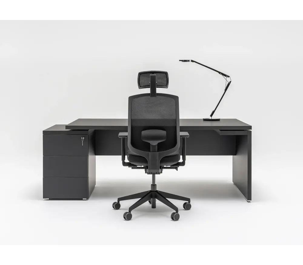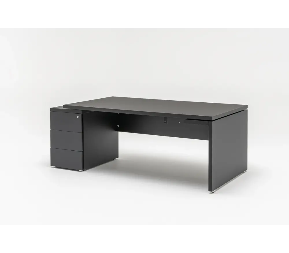 Bureau de direction Mdd Mito avec caisson à tiroirs noir fenix: Élégant et Fonctionnel
