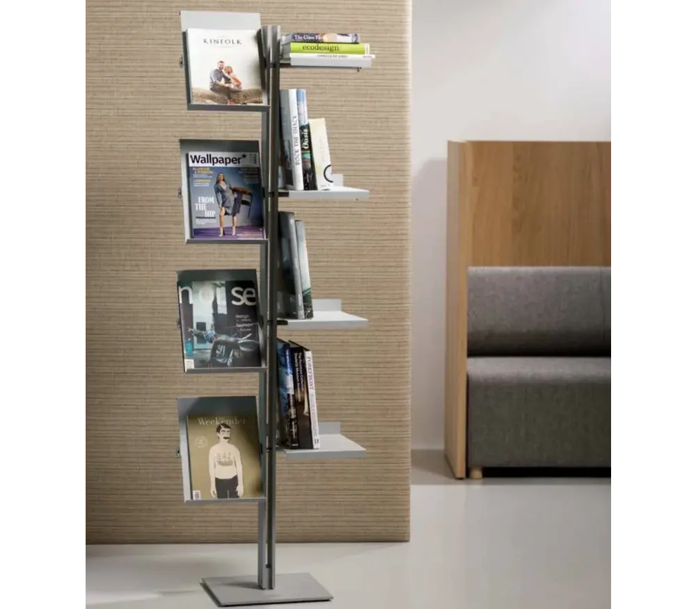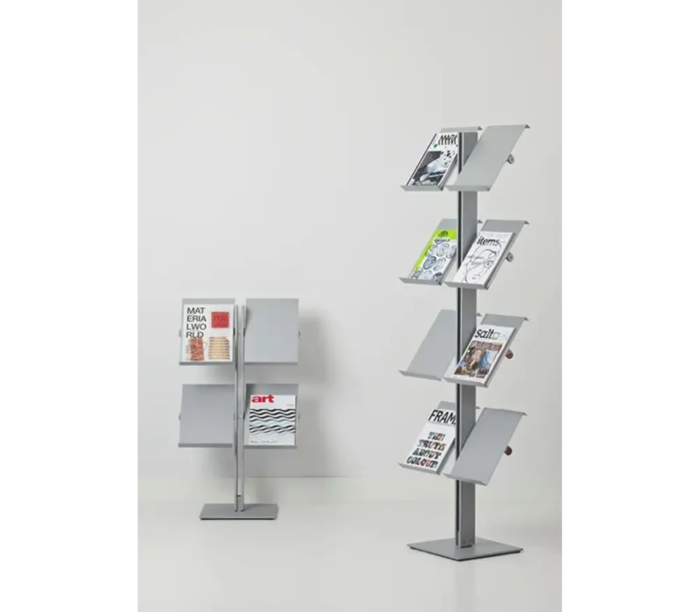 Le Cascando Flexxible Double est un porte-brochures design et polyvalent, conçu par Onno de Knegt. Il permet de présenter brochures, magazines et livres de manière élégante.