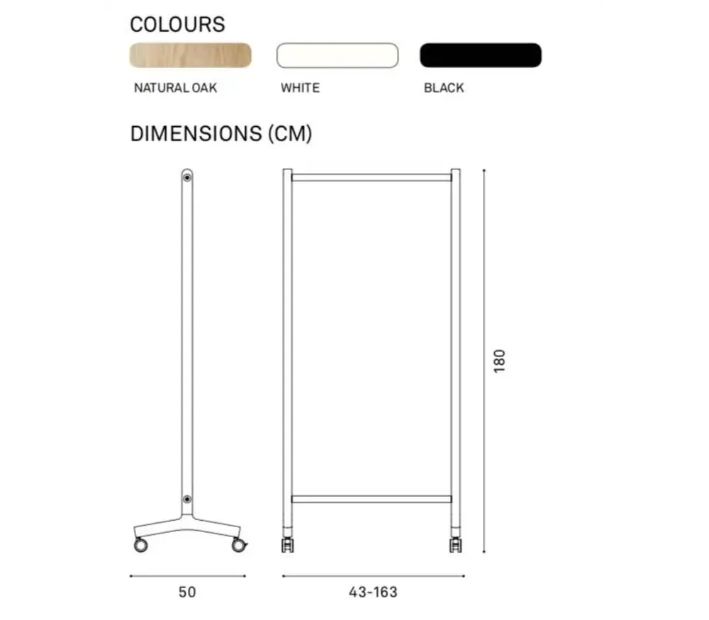 - Matériaux: Poteaux en bois, roulettes pivotantes avec freins et tiges en aluminium anodisé