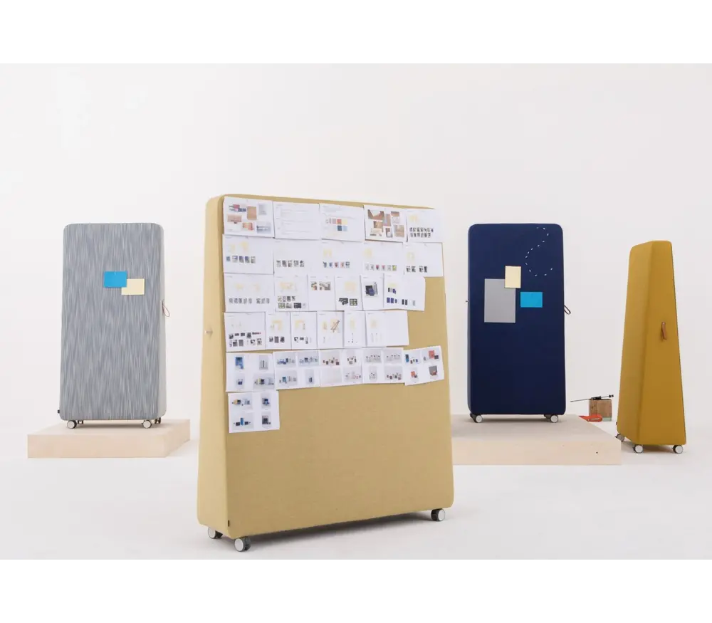 Le Trunk mobile joue également le rôle de séparateur de pièce et est doté d'une laine PET de haute qualité qui absorbe le bruits. Les tableaux blancs sont équipés d'une plaque en acier émaillé de haute qualité et sont disponibles en option! Ces tableaux blancs sont adaptés aux accessoires magnétiques.