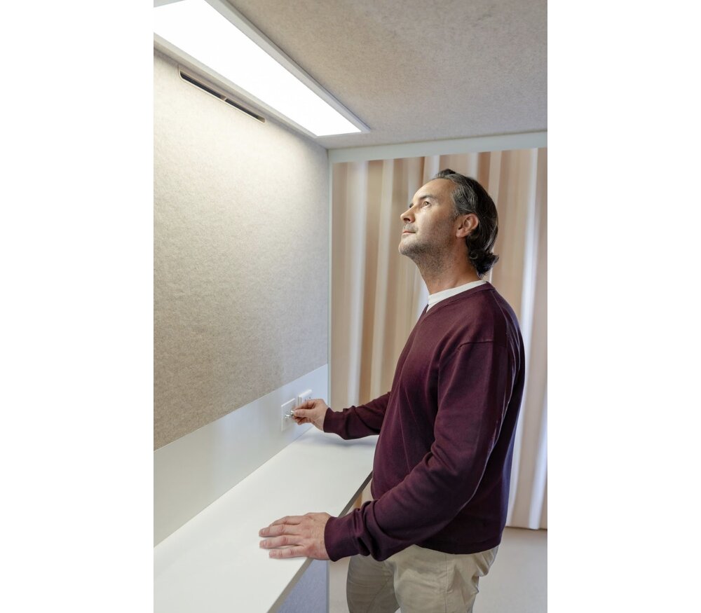 Grâce à son design biophilique, la Cube 1 Stand apporte chaleur et équilibre à votre environnement de bureau. Son revêtement intérieur en feutre de laine italienne beige et ses détails en bois naturel créent une atmosphère douce, apaisante et propice au bien-être.