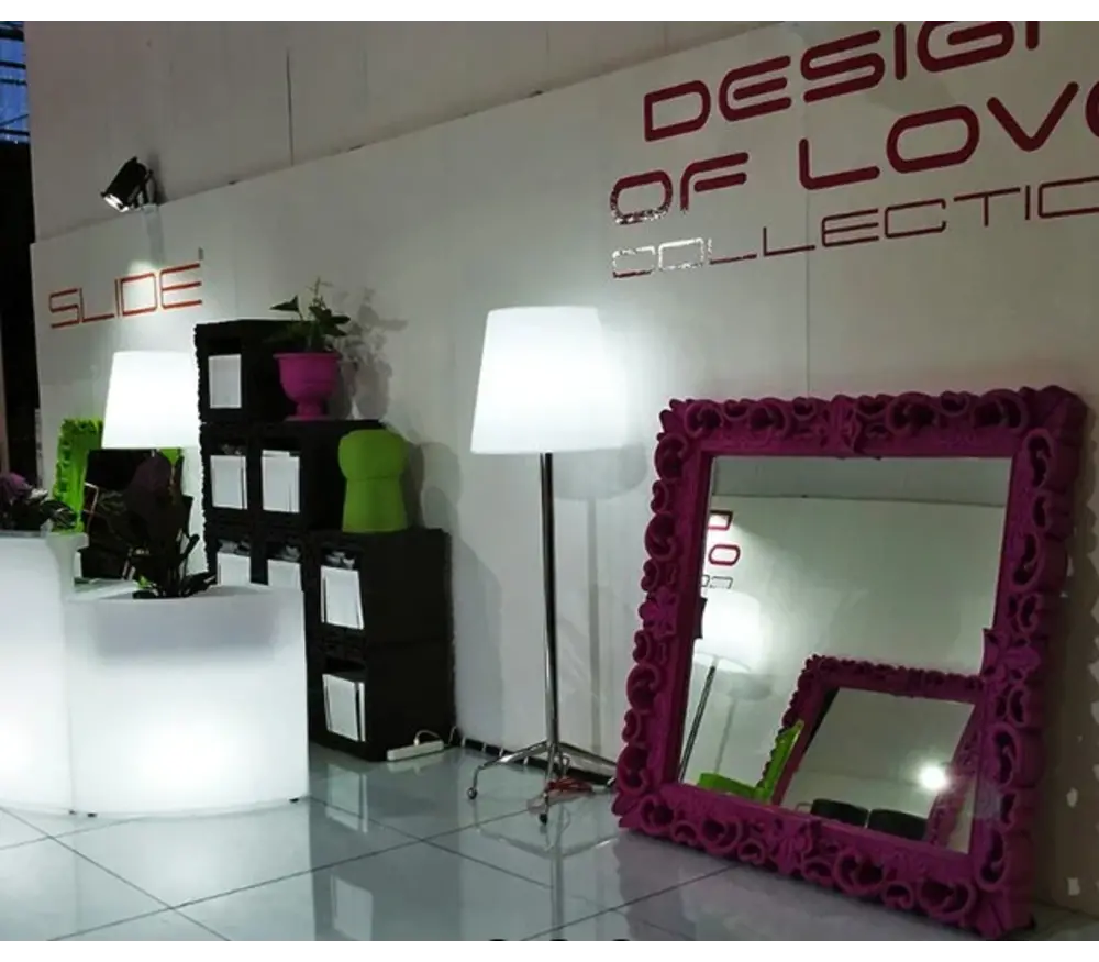 SLIDE est une réalité entièrement italienne, née en 2002 grâce à plus de trente ans d’expérience de Giò Colonna Romano, dans le traitement des résines plastiques : des premières expériences dans le secteur des biens d’équipement ménager et des articles de jardin(mobilier pour jardin), jusqu’aux innovants mobiliers lumineux et colorés(lampadaires, lampe de table à poser, plafonniers et objets lumineux), au design épuré et ironique de la collection SLIDE. Les produits SLIDE, réalisés en polyéthylène par roto-moulage et caractérisés par une utilisation exceptionnelle de la lumière, sont idéals pour des agencements d’extérieurs, intérieurs et pour l’événementiel. Les objets sont les résultats de collaborations avec des designers de renommée internationale comme Karim Rashid, Marcel Wanders, Paola Navone, Marc Sadler, Alessandro Mendini, Stefano Giovannoni et Denis Santachiara, répondant à la volonté de créer un produit de qualité et de se positionner dans un segment moyen-haut de gamme du marché.