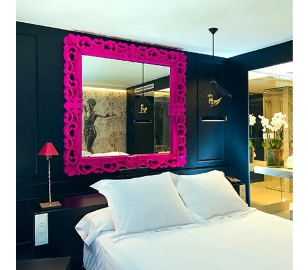 Ce miroir de design par Slide est une réinterprétation du style baroque classique, avec un style simplifié et un design pur. Les Mirror of love - miroirs ont une finition spéciale en polyéthylène, avec un design élégant et classiqu et utilisable en intérieur et extérieur. Le miroir de Slide est idéal pour décorer un espace public, et lieux élégants, classiques qui nécessitent un grand impact visuel ou même pour le Horeca(Hotel-restaurant-café). Le miroir de design est disponible dans différentes coloris chez Brand New Office!