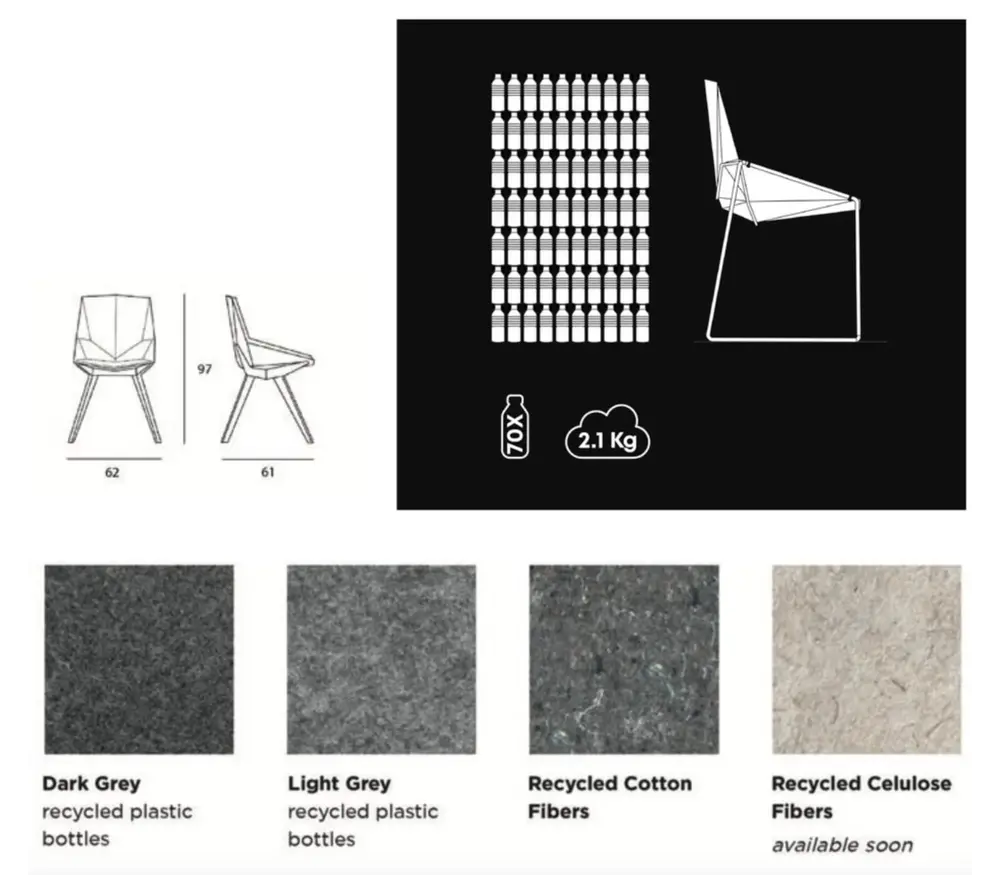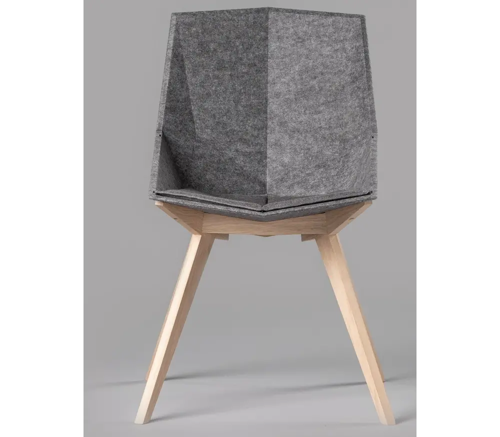 Primoz Jeza Studio et Donar ont repensé une nouvelle philosophie de conception socialement responsable et durable et ont créé une chaise en feutre recyclé (70 % de bouteilles en PP recyclées et 30 % de textiles non tissés).