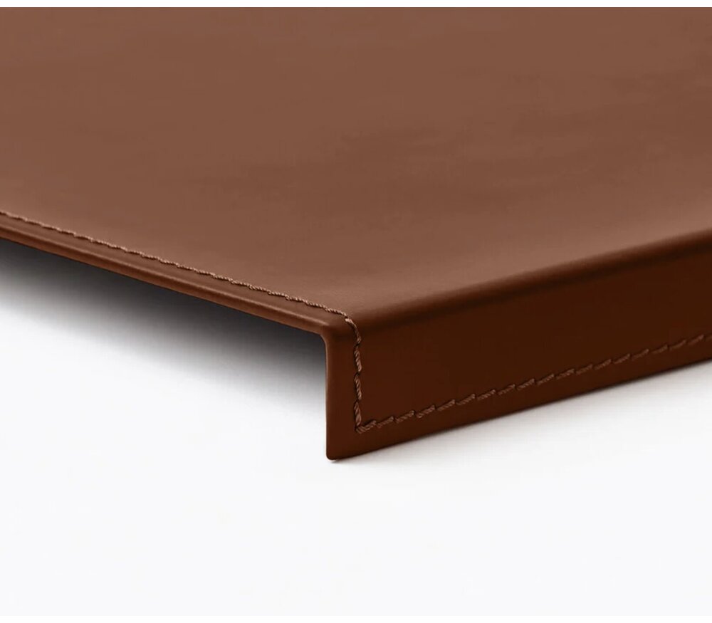 Les coutures assorties, réalisées avec précision, soulignent le savoir-faire artisanal italien. Chaque sous-main est entièrement fabriqué en Italie par une entreprise spécialisée dans le travail du cuir, attentive à chaque détail, de la découpe des matériaux jusqu’à l’emballage final.
