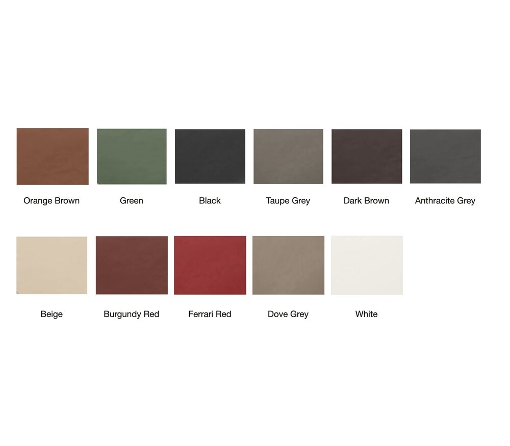 Noir – Orange Brown – Dark Brown – Anthracite Grey – Taupe Grey – Dove Grey – Beige – Burgundy Red – Ferrari Red – Blanc – Vert