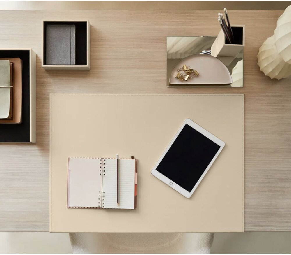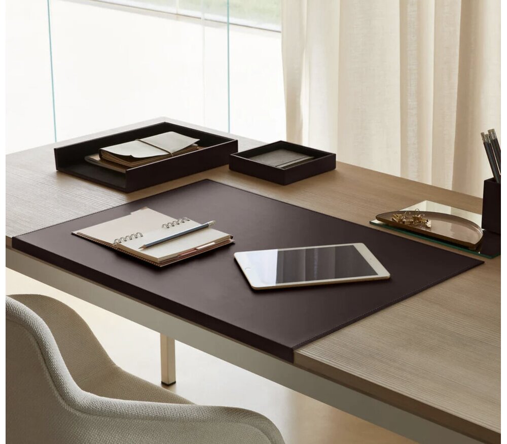 Le sous-main Calliope combine esthétique italienne, stabilité structurelle et qualité artisanale pour sublimer votre espace de travail.