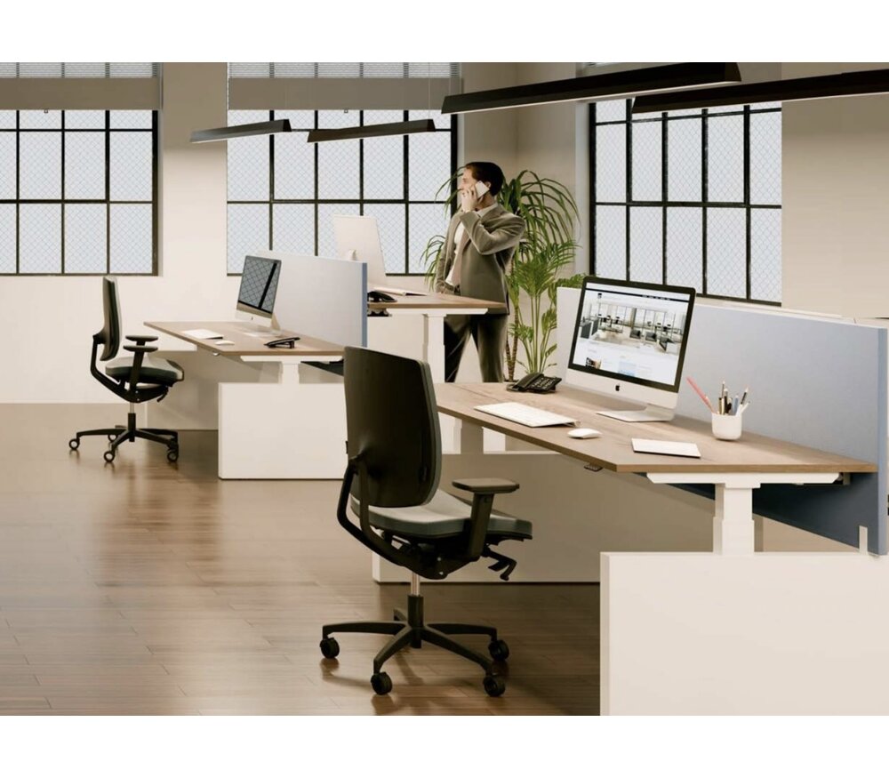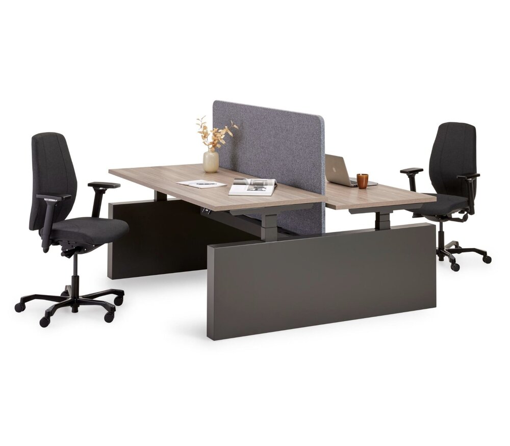 La Flex bench est un poste de travail duo moderne et robuste, parfaitement adapté aux besoins de flexibilité et d’ergonomie. Grâce au cadre latéral sans traverse, les utilisateurs profitent d’une liberté de mouvement optimale, tandis que les joues métalliques de 10 centimètres d’épaisseur apportent une allure puissante et représentative dans tout environnement de bureau.