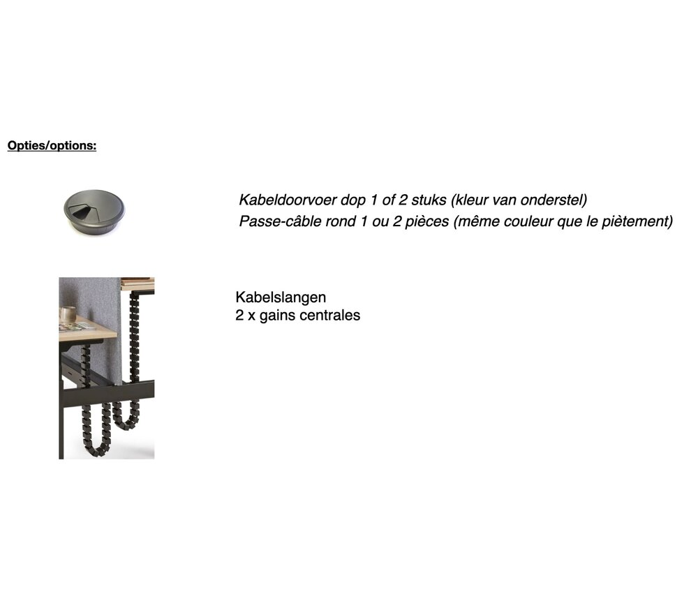 - Passe-câbles en option: Passe-câbles (passage rond - emplacement au choix), trappe passe-câbles alu - emplacement au choix, panier à câbles
