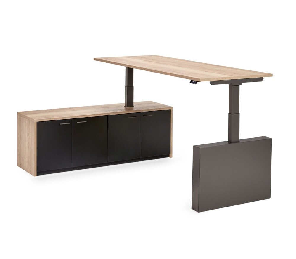 Le piètement en panneaux latéraux du bureau assis-debout électrique apporte robustesse et caractère à votre espace de travail. Associé au plateau réglable électriquement, il vous garantit un environnement de travail ergonomique, flexible et raffiné.