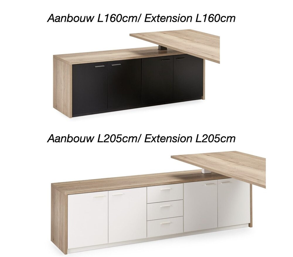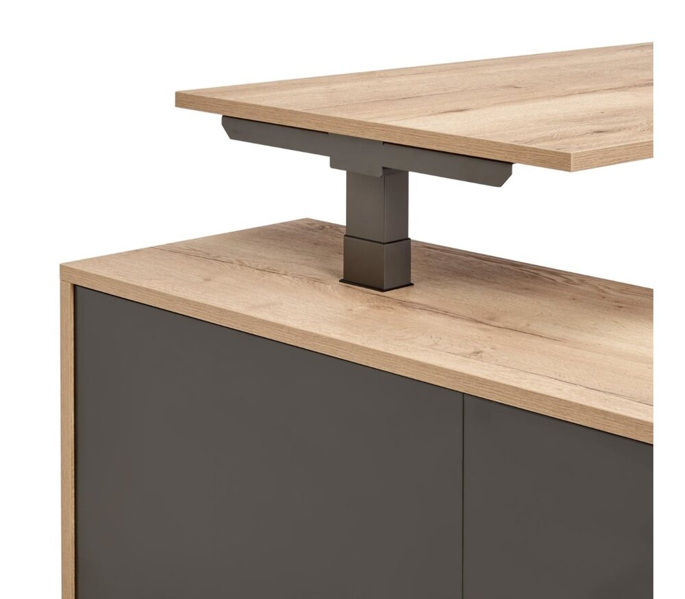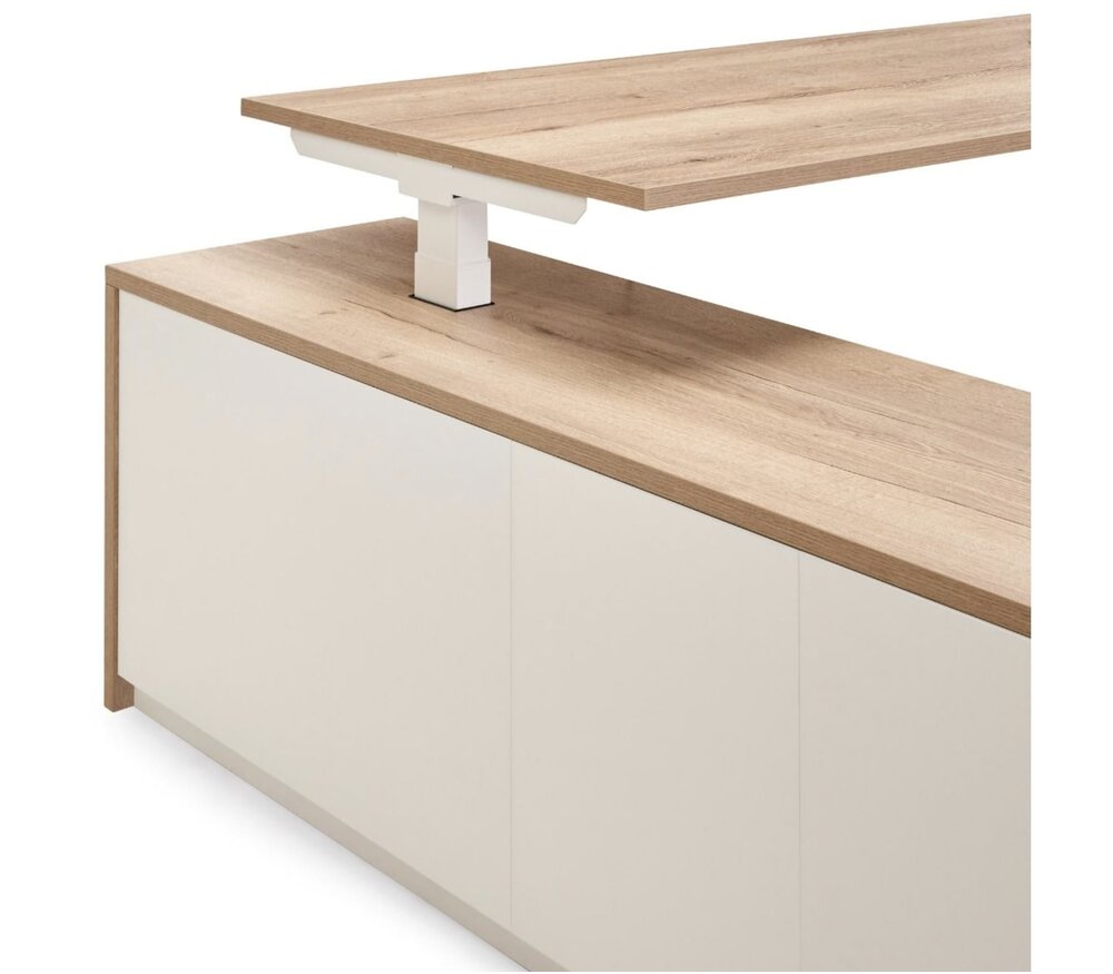 Le caisson intégré offre un vaste espace de rangement et peut être configuré selon vos besoins. Doté de portes softclose et d’étagères pratiques, il associe fonctionnalité et élégance. Son dos parfaitement fini permet une installation en îlot – idéal pour un bureau de direction moderne et représentatif.