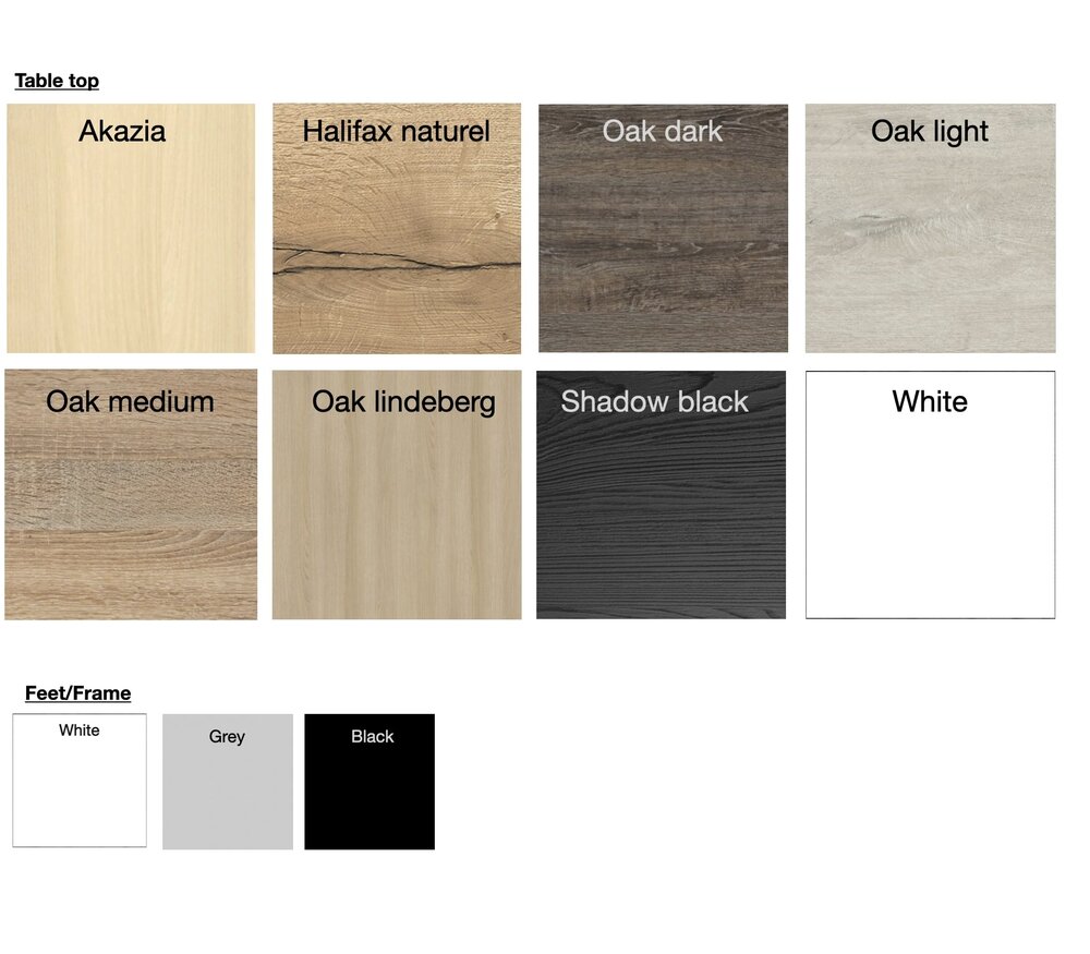 - Matériau: Panneau de particules mélaminé (E1) 25 mm avec bord en PVC, acier enduit de poudre, acrylique