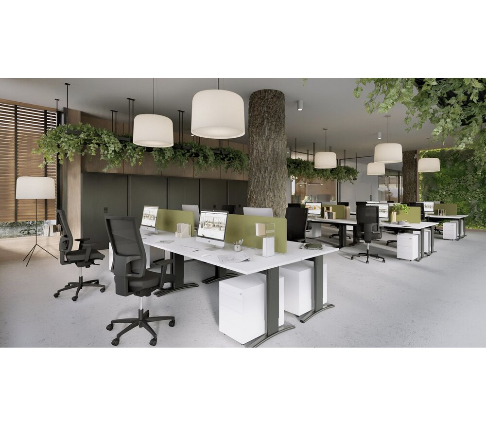 Le bureau Flexaro Entrada rectangulaire combine un design épuré avec un haut niveau de fonctionnalité. Son pied en T élégant offre une excellente liberté de mouvement et une structure visuellement légère, parfaitement adaptée aux bureaux modernes.