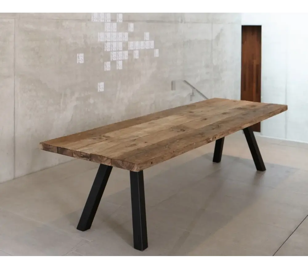 Jan Kurtz Bradford Table en chêne: avec son plateau en chêne recyclé naturel et irrégulier et ses pieds en acier galvanisé noir ou blanc, cette table rustique est parfaite.