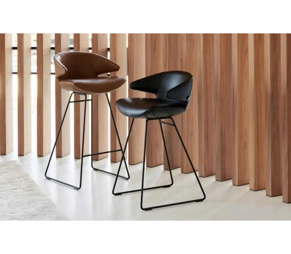 Les formes douces en coquille d'œuf des Joli Morisot tabouret de bar en cuir sont associées à un dossier robuste et des accoudoirs pratiques. L'ensemble procure une sensation d'assise agréable et enveloppante.
