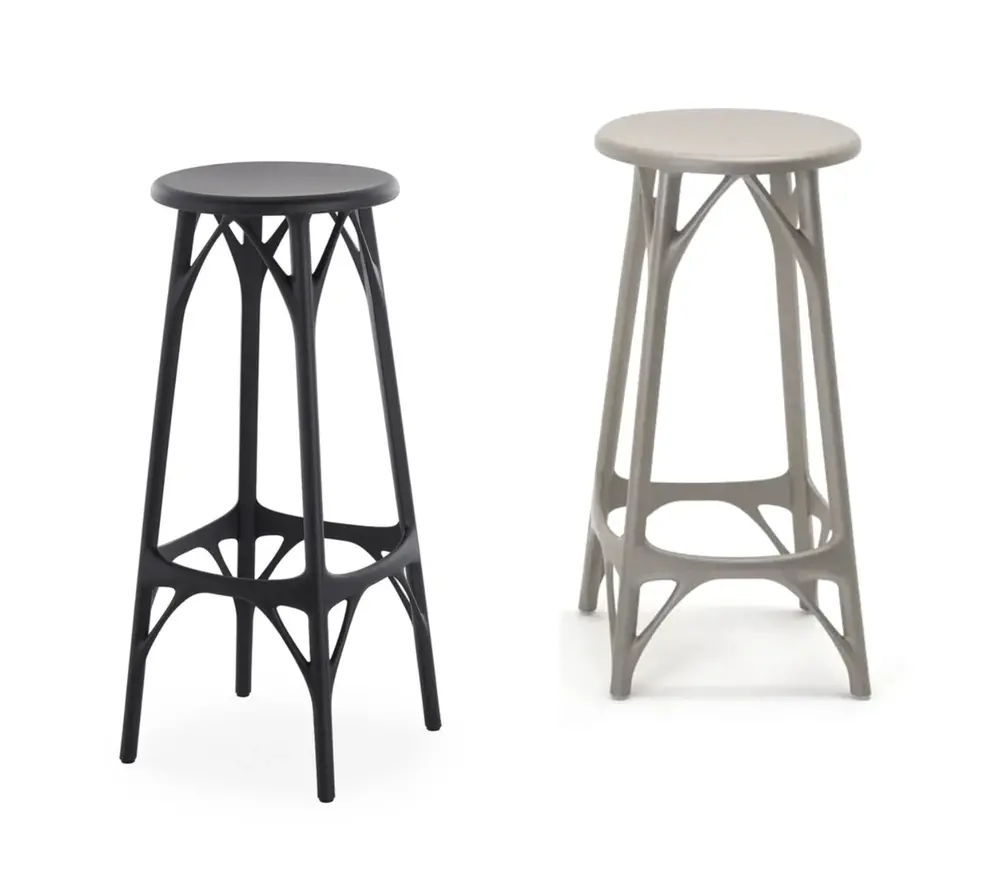 Bienvenue dans l'ère moderne - l'A.I. tabourets by Kartell est la première chaise design conçue par intelligence artificielle. Il est basé sur un algorithme qui combine les caractéristiques de base de l'approche de conception de Philippe Starck et de Kartell. Le résultat est une chaise avec une assise confortable qui répond à la fois aux exigences structurelles et esthétiques. La valeur ajoutée de l'utilisation de l'intelligence artificielle est qu'elle ne remplace pas la partie créative du concepteur, mais accélère le processus de prototypage et de planification et raccourcit le délai de mise sur le marché.