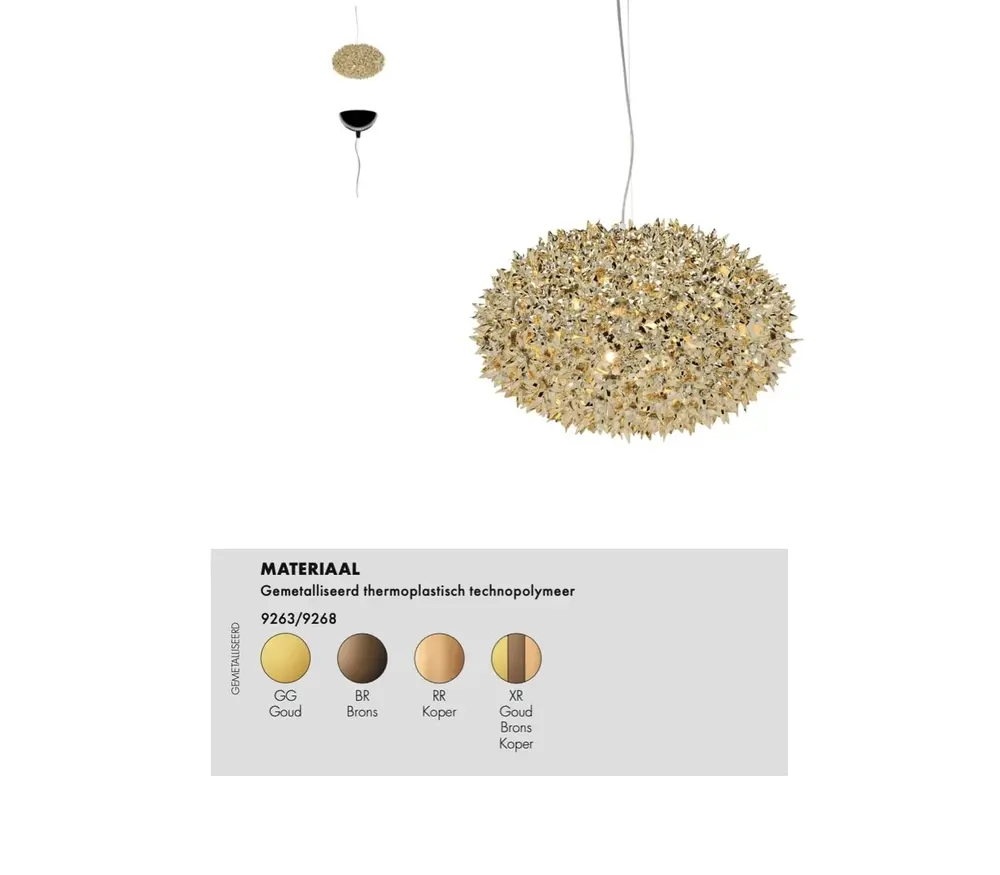 La Kartell Bloom lampe de suspension est est disponible dans des nouveaux coloris: cuivre, or et chromé.