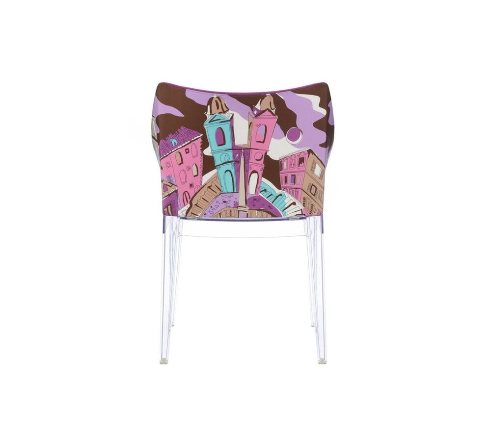 La chaise Madame fait partie du projet mondial des villes, qui a été créé pour honorer les showroom's et salle d'exposition mondiale de Emilio Pucci. L'assise de cette chaise de design est recouvert d'un tissu 100% polyuréthane, la structure se compose d'un polycarbonate transparent ou teinté dans la masse. Les modèles Kartell Madame sont inspirés par les villes ou les salle d'exposition de Pucci sont: Milan, New York, Paris, Rome et Shanghai. La nouvelle chaise se prête à la maison dans la salle à manger, dans un bureau, une salle d'attente ou à pour l'Horeca (hôtel-restaurant-café). En outre, ce chaises Madame Kartell sont ignifuge! Sur nos photos vous voyez ce que les modèles peuvent être dans les villes. Commandez le Madame chair de la maison de design italienne Kartell aujourd'hui chez Brand New Office!