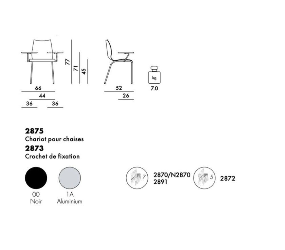 - Matériaux: tube d'acier chromé, polypropylène teinté dans la masse