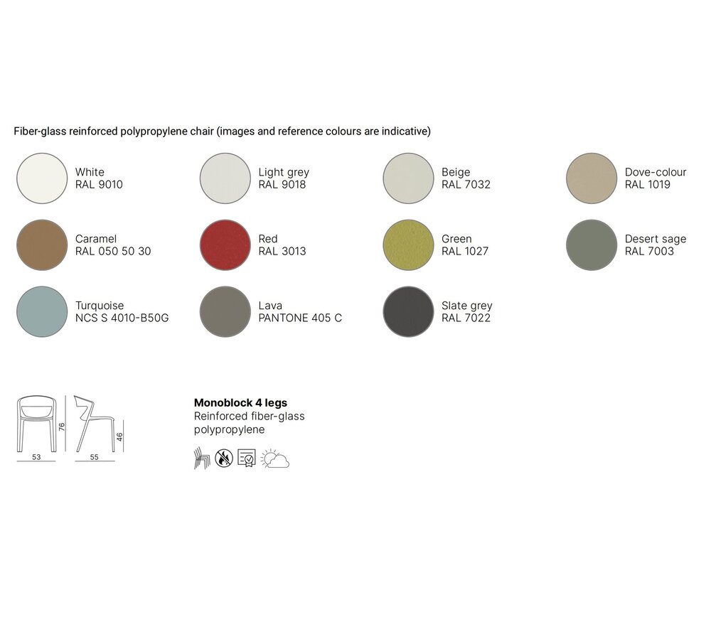 Grâce à sa fabrication en polypropylène renforcé, cette chaise est particulièrement résistante, durable et adaptée à un usage intérieur comme extérieur. Elle convient parfaitement aux restaurants d’entreprise, cantines, terrasses, cafés et autres établissements horeca.