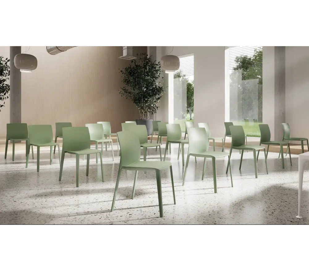 Un atout majeur de la Kastel Klia réside dans sa capacité d’empilage. Les chaises peuvent être empilées de manière compacte, facilitant le rangement et le transport. Cette caractéristique la rend particulièrement adaptée aux espaces polyvalents nécessitant des configurations flexibles.