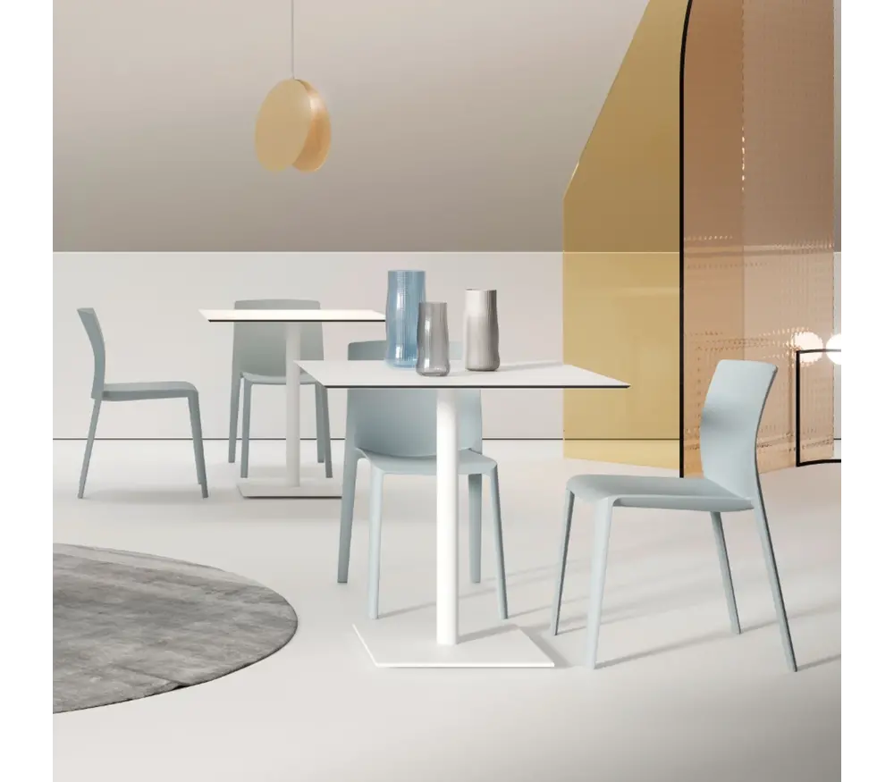 Grâce à ce matériau robuste et facile d’entretien, elle convient aussi bien à une utilisation intérieure qu’extérieure, ce qui la rend idéale pour les restaurants d’entreprise, cantines, terrasses et établissements horeca.