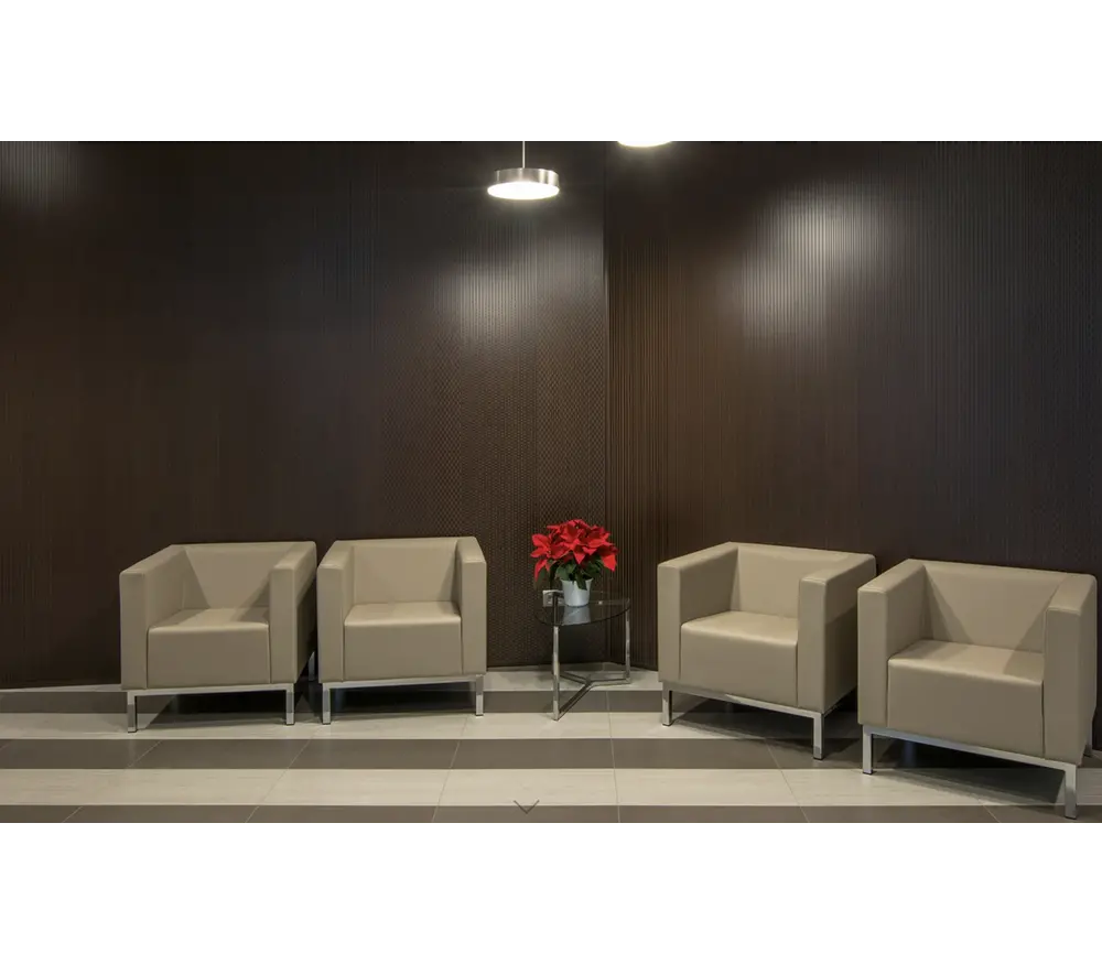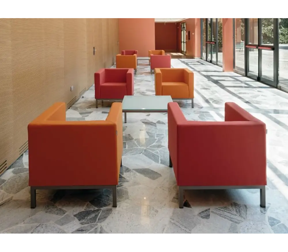 - Matériaux: base à tube métalliques, finition chromé, structure en bois massif,remplissage coulé.