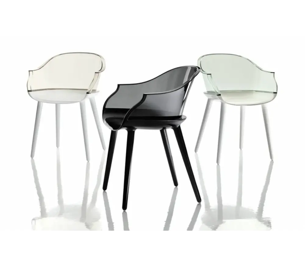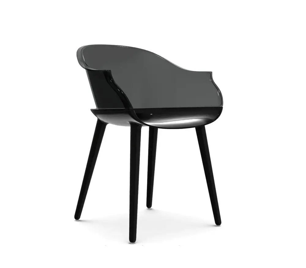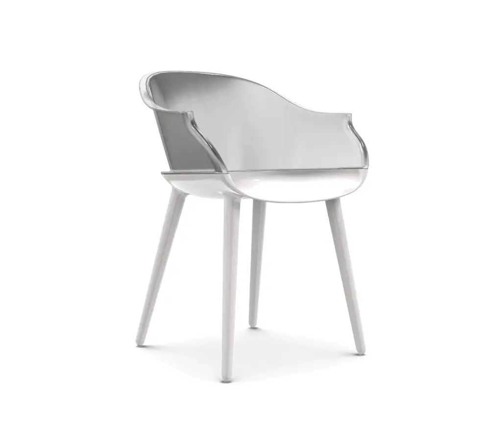 Il en résulte des objets au charme hybride, telle sa chaise à accoudoirs Cyborg créée pour le célèbre label Design Magis. Pour la chaise Cyborg de Magis, Marcel Wanders a eu l’idée de mêler le rotin naturel avec du polycarbonate brillant blanc ou noir. Le fascinant mélange de matériaux de la chaise à accoudoirs Cyborg de Marcel Wanders est admirablement mis en valeur par sa forme à la fois rétro et futuriste. Cyborg dissimule derrière son apparence aérienne et légère une technique de fabrication d’un grand raffinement. Cyborgde Magis fait aussi forte impression dans la version intégralement fabriquée en polycarbonate blanc ou noir, avec un dossier transparent d’une pureté classique.