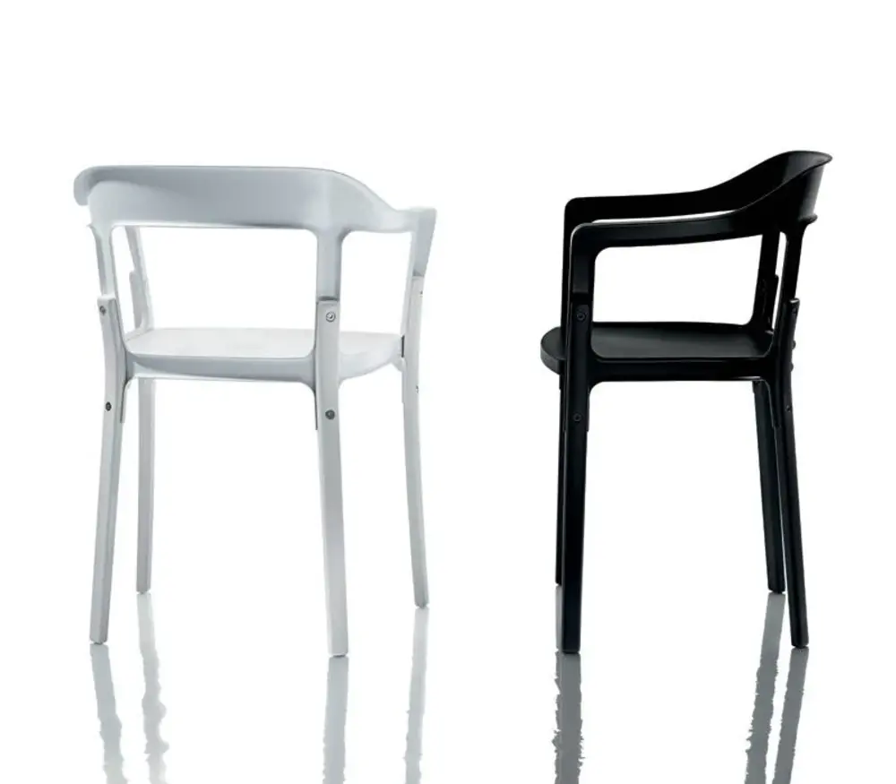 Son nom trahit tout, cette chaise Magis est faite d'une combinaison d'acier et de bois de hêtre ou de noix qui est disponible en blanc et noir. Le cadre est en acier époxy. La chaise Steelwood est disponible avec les pieds en hêtre naturel et cadre blanc ou noir. Cette chaise design a remporté le prix du meilleur designer, Compasso D'oro, et est disponible en stock chez Brand New Office.