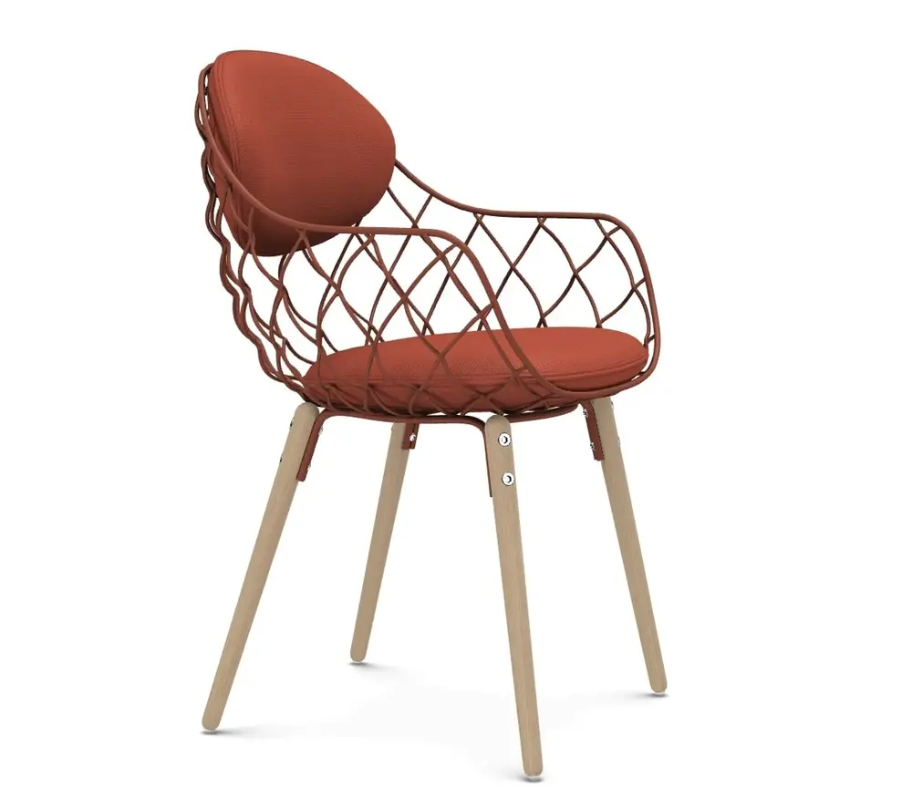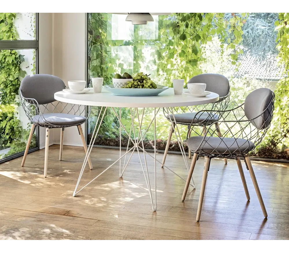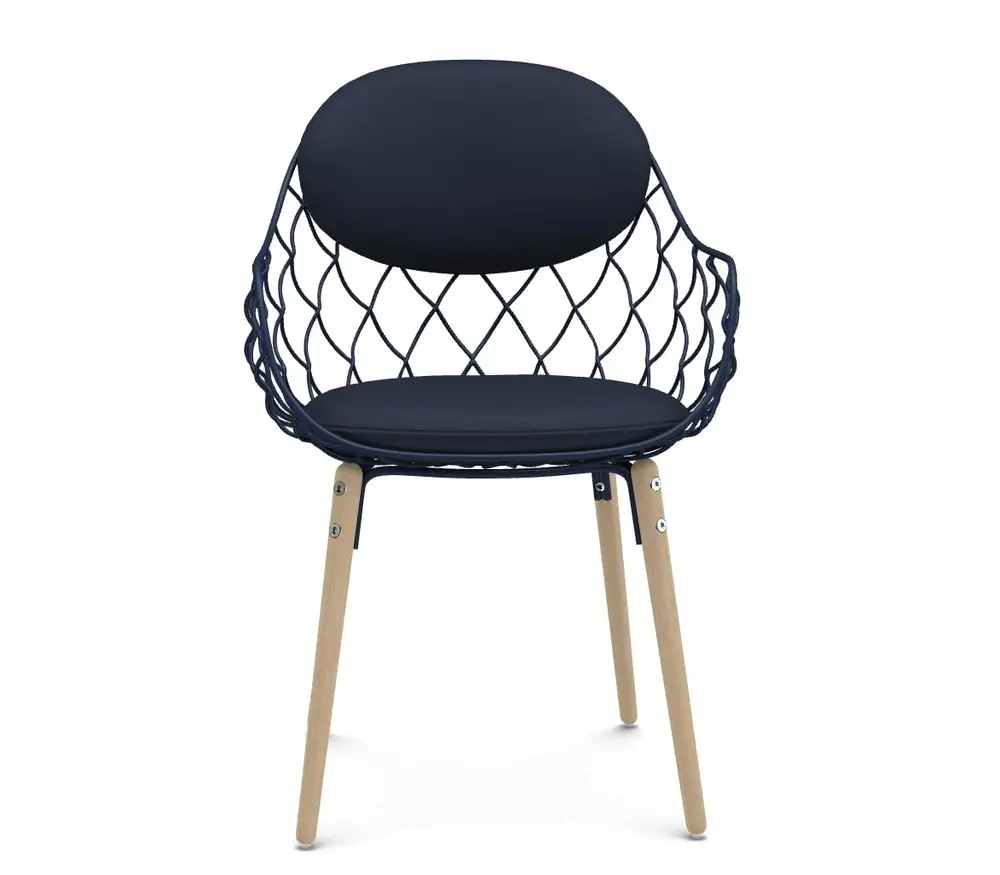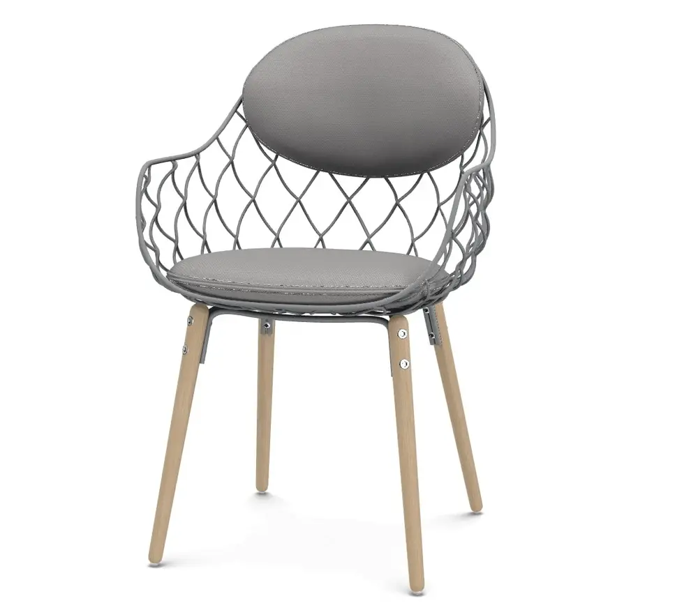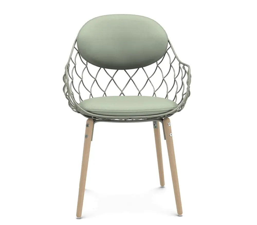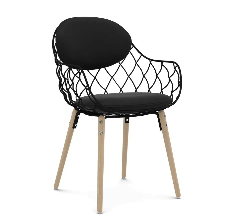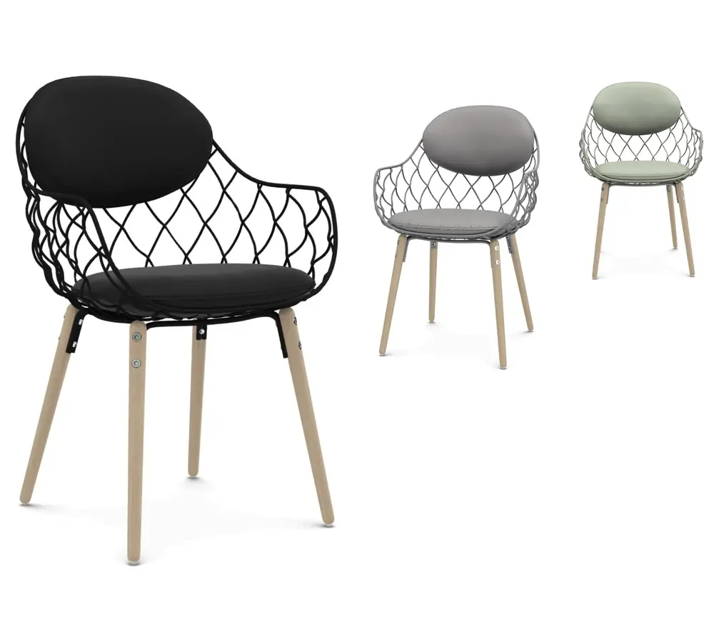 La chaise PIÑA a été faite de fil d'acier pulvérisé époxyde soutenu par 4 pieds de hêtre plein dans la couleur normale ou laquée. Cette chaise moderne a un siège confortable et est idéale pour se détendre.