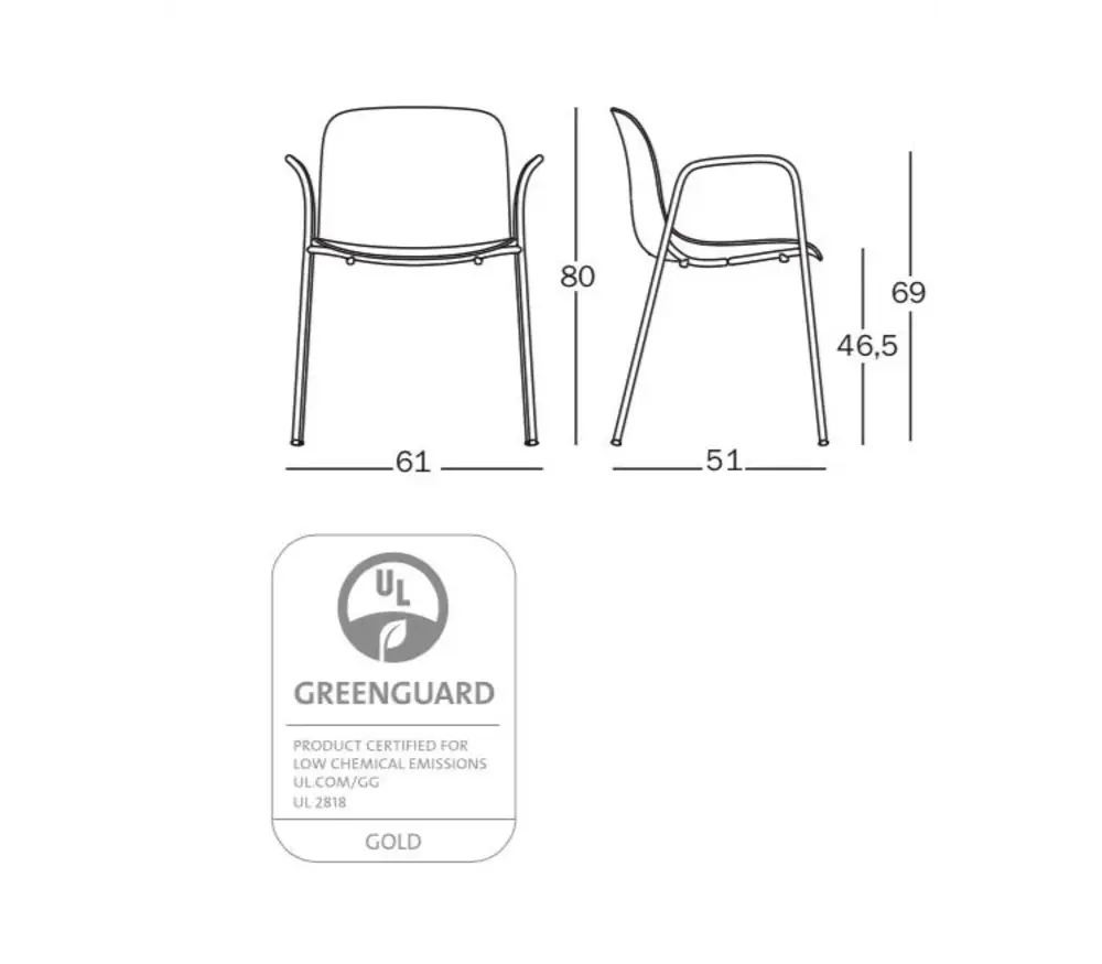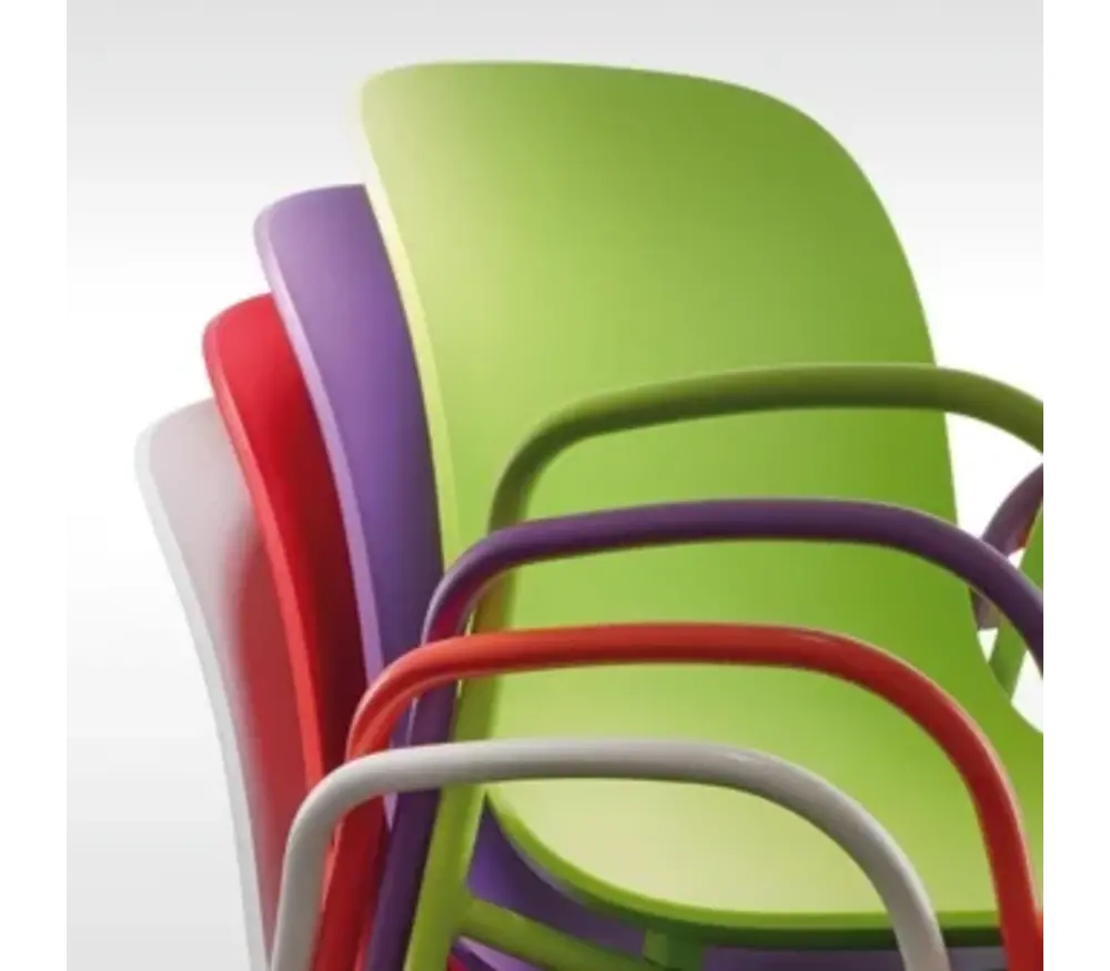 La Magis Troy chaise avec accoudoir avec son assise en plastique est particulièrement confortable et est disponible en différentes versions.