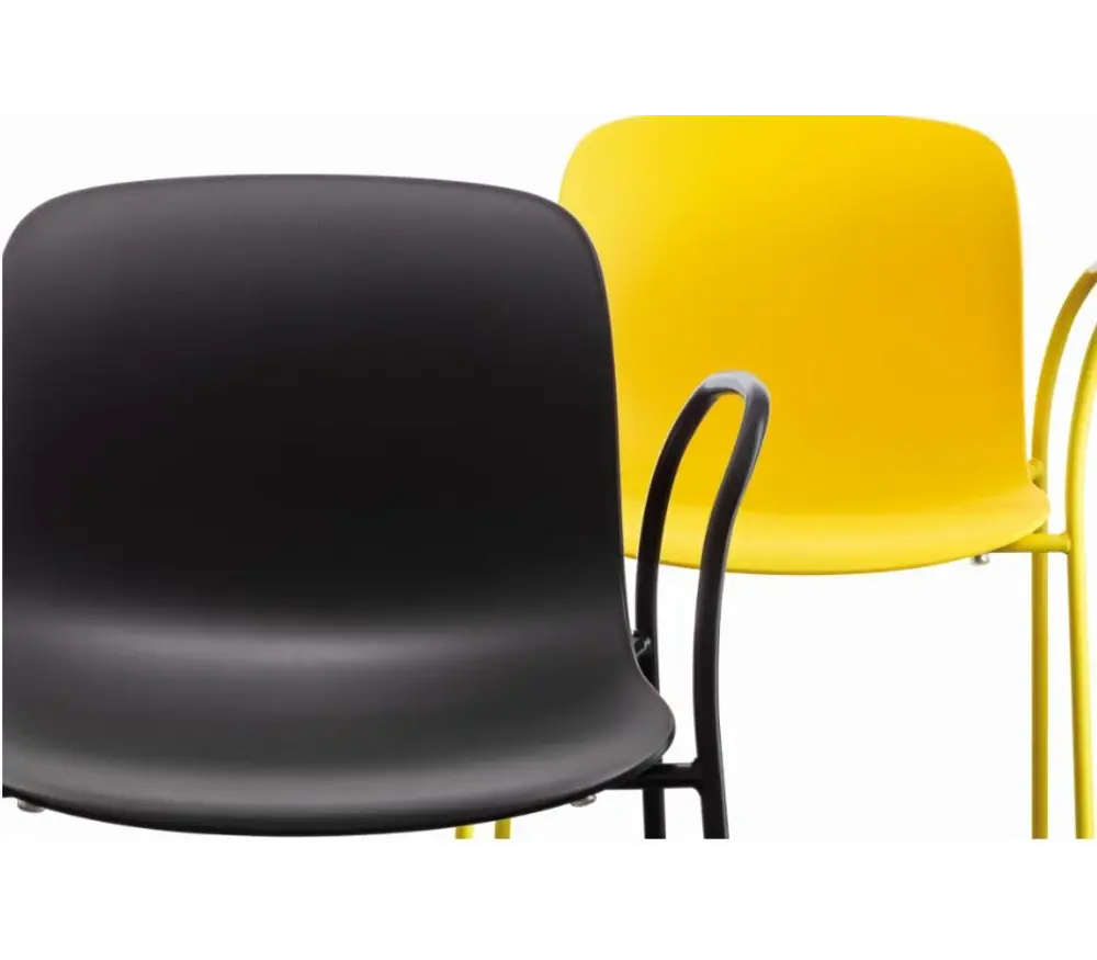 Ces versions en plastique, sans gaufrage sur le dossier, sont également disponibles en différentes couleurs. L'assise ergonomique de la chaise Magis Troy est arrondie sur le côté et donc très confortable. Le dossier se fond dans la zone d'assise sur un châssis ergonomique bien formé.