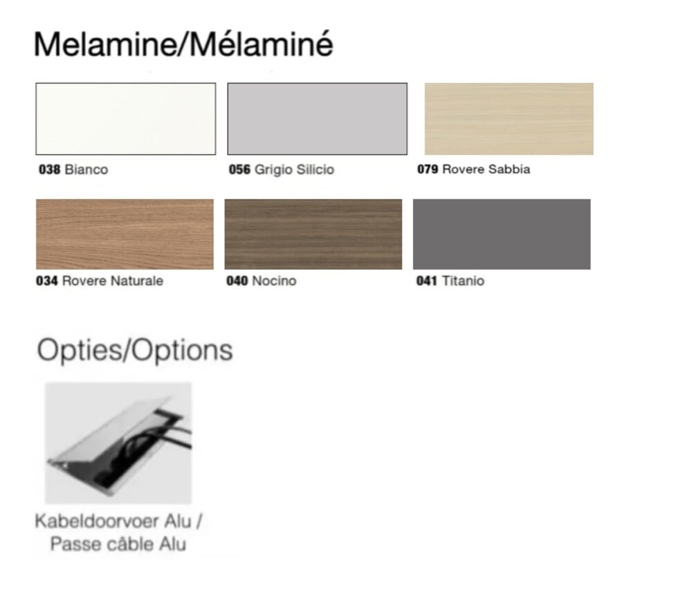 - Matériaux: Panneau de particules E1 avec revêtement mélaminé ou laqué et métal