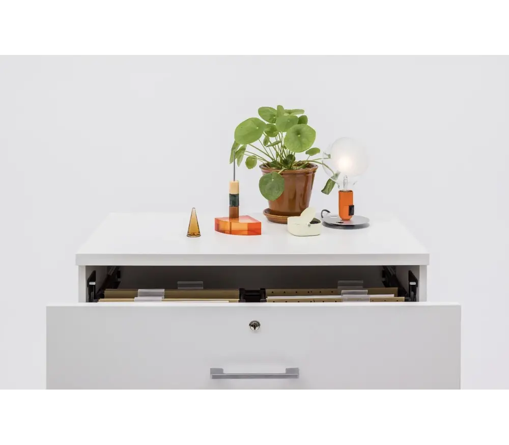 Les tiroirs de l'armoire sont entièrement extensibles, permettant un accès facile et pratique aux documents. Grâce au système de sécurité anti-basculement, chaque tiroir reste stable et sûr, même lorsqu'il est entièrement ouvert. De plus, les tiroirs sont verrouillables, offrant une protection supplémentaire pour vos informations confidentielles. L'armoire est livrée démontée (flatpacked), avec des instructions simples pour un montage rapide.