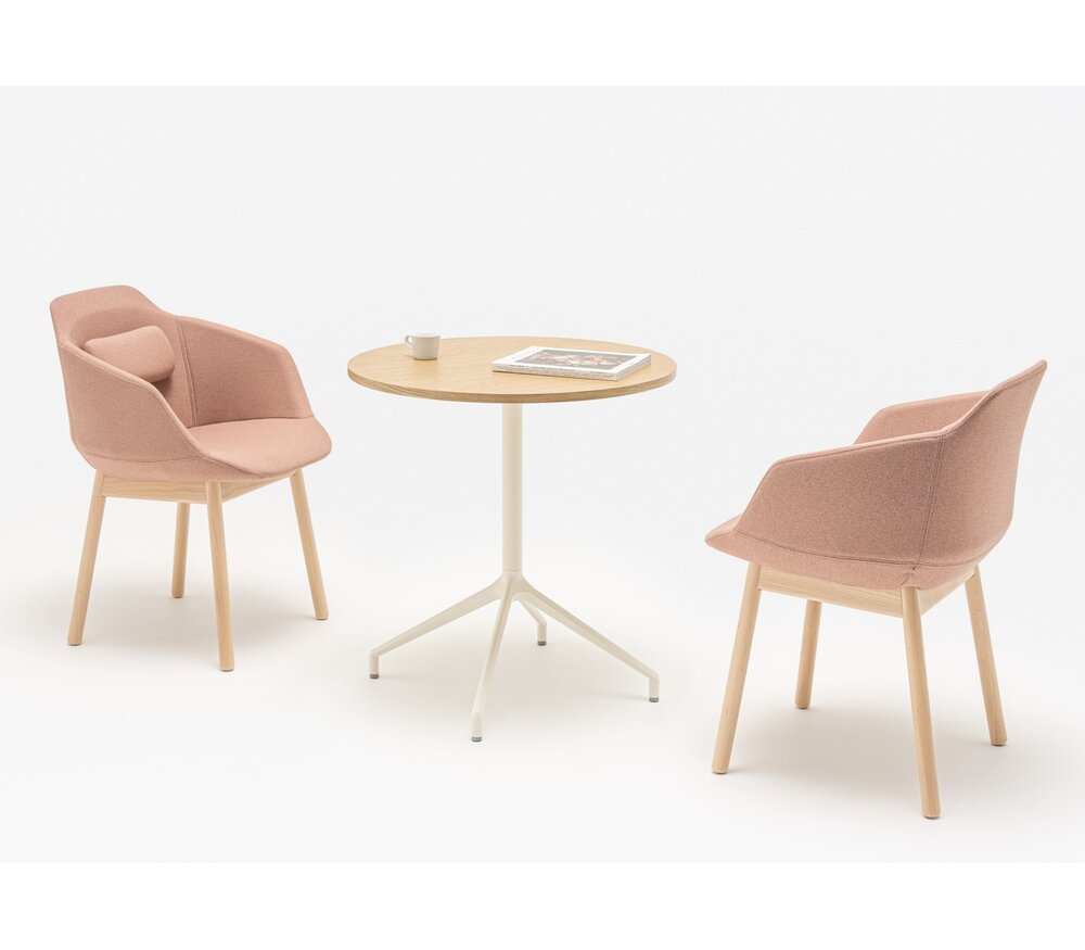 - Matériaux : Plateau – MFC 18 mm | Piétement – 4 branches en aluminium thermolaqué, profil Ø 45 mm, aluminium moulé | Pieds – plastique