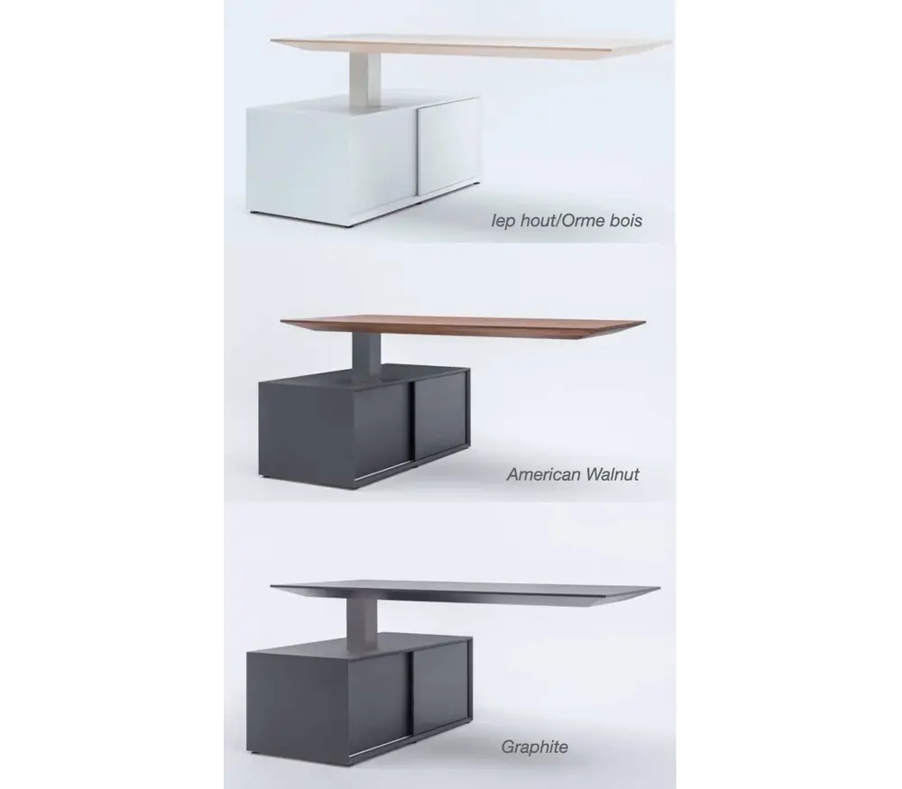 Le bureau Gravity ne se limite pas à un simple bureau de direction. Il fait partie d'une collection complète comprenant une table de conférence réglable en hauteur, un bureau exécutif et une station multimédia, permettant de créer une solution harmonieuse et flexible pour tous types de bureaux. Chaque élément de la gamme est conçu pour offrir à la fois confort, praticité et esthétique.