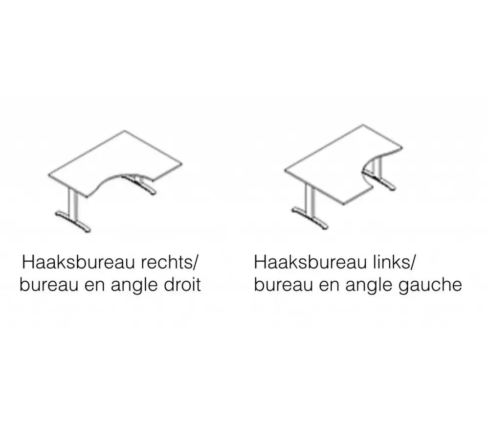 La configuration en angle est disponible en 160 × 120 cm ou 180 × 120 cm, pour une hauteur de 74 cm. Le voile de fond intégré permet de dissimuler proprement les câbles de l’ordinateur, du téléphone et des autres équipements, garantissant un espace de travail ordonné et professionnel.